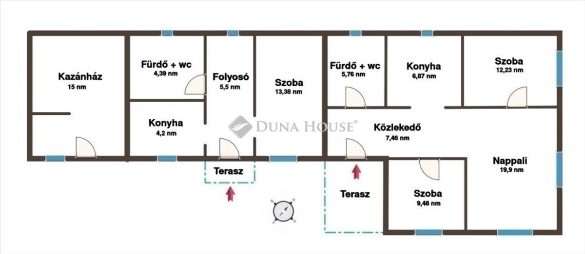 - Külön villanybojler mindkét lakásban, a kisebbik lakásban éjszakai áramról működik