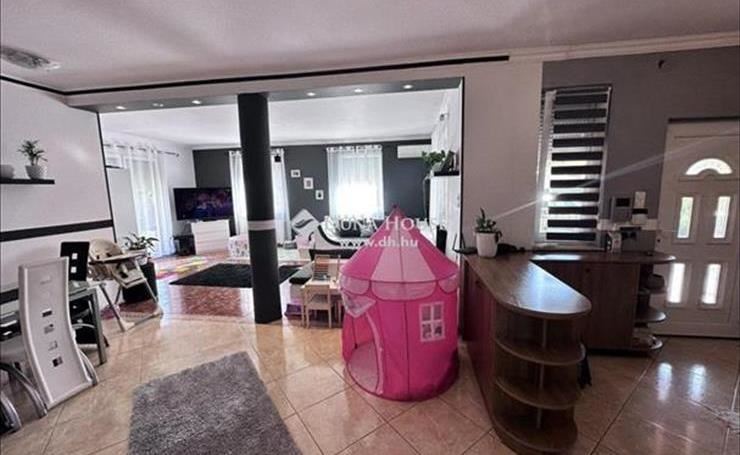 Az otthon egy 622 nm -es összközműves telekre épült 2003-ban Ytong falazattal, Bramac bretoncserép fedéssel. a földszinti lakrész 140 nm-es melynek belső elosztása előszoba, nappali, konyha, étkező, wc, fürdő, két hálószoba, két terasz, garázs, kazánház-mosókonyha-wc. a fenti lakrész elosztása amerikai - konyhás - nappali, kamra, fürdő, wc, kazánház, két külön nyíló szoba, gardrób, közlekedő, erkély. Mindkét lakrész fűtését és melegvíz ellátását gáz cirkó biztosítja. a lenti részen padlón és lapradiátorokon keresztül történik a hőleadás. Az emeleten lapradiátorokon keresztül történik a fűtés. Az otthont eddig két testvérpár lakta. De nagycsaládosok számára is tökéletes választás lehet ez a napfényes tágas kedves kis ingatlan. a kert parkosított melynek öntözését öntözőrendszer biztosítja. a parkosított telek egyik sarában sütögető és bográcsolló helyiség került kiépítésre. Így a család és a barátok kedvükre sütögethetnek és pihenhetnek ebben a szép zöld intim környezetben. a garázson lévő ajtó és a telere vezető nagykapu elektromos. Az ingatlan hűtő-fűtő klímával ellátott.