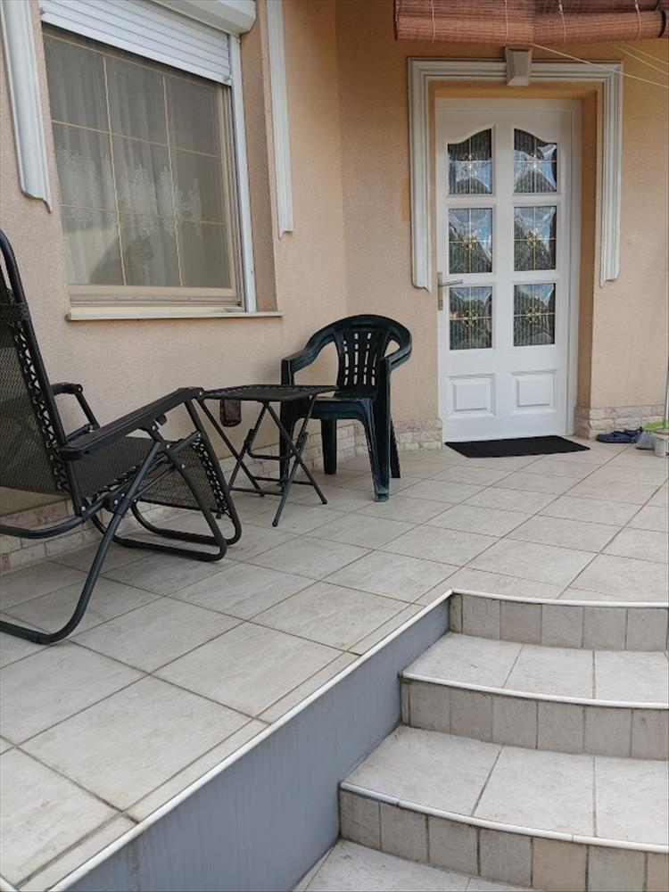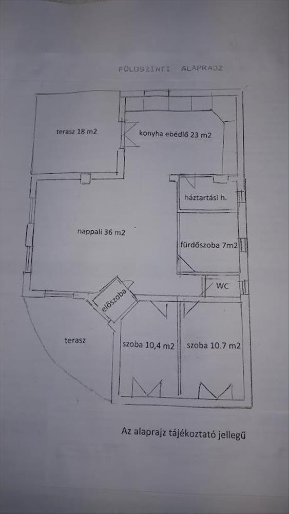 Földszint helyiségei: nappali, konyha ebédlővel, két félszoba, kádas fürdőszoba, külön wc, első és hátsó terasz.