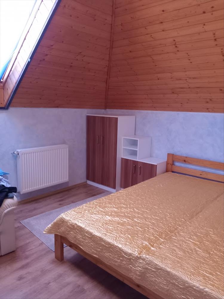 A nappaliból vezet a lépcső a tetőtérbe, ahol két szobát és egy zuhanyzós fürdőszobát találunk. Itt igény szerint könnyen kialakítható egy konyha is.
