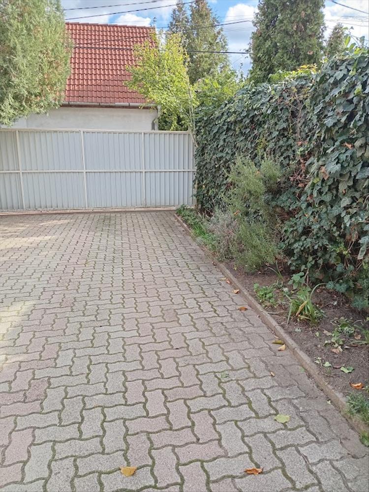 Az udvar hátsó része térkövezett, elöl füves rész és kert is található, a ház mögött helyezkedik el a fedett kocsibeálló és még 3 autó parkolására van lehetőség az udvarban.