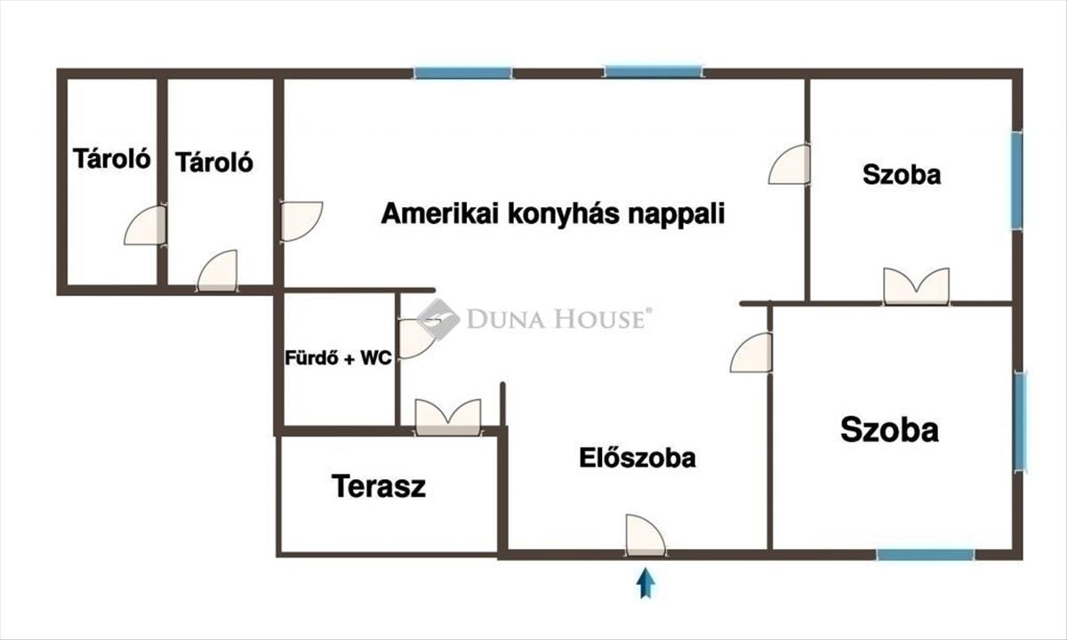 A két szoba egymásból és külön-külön is nyílik, kialakításra került az amerikai konyhás nappali élettere.