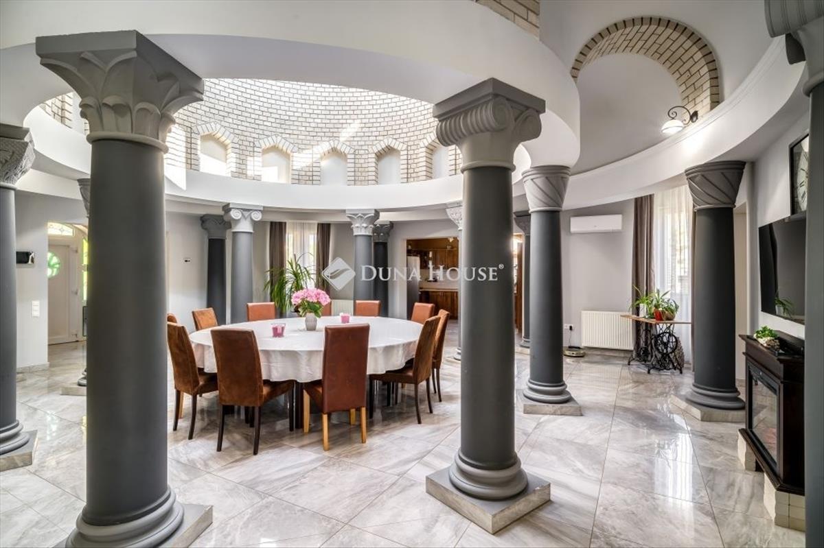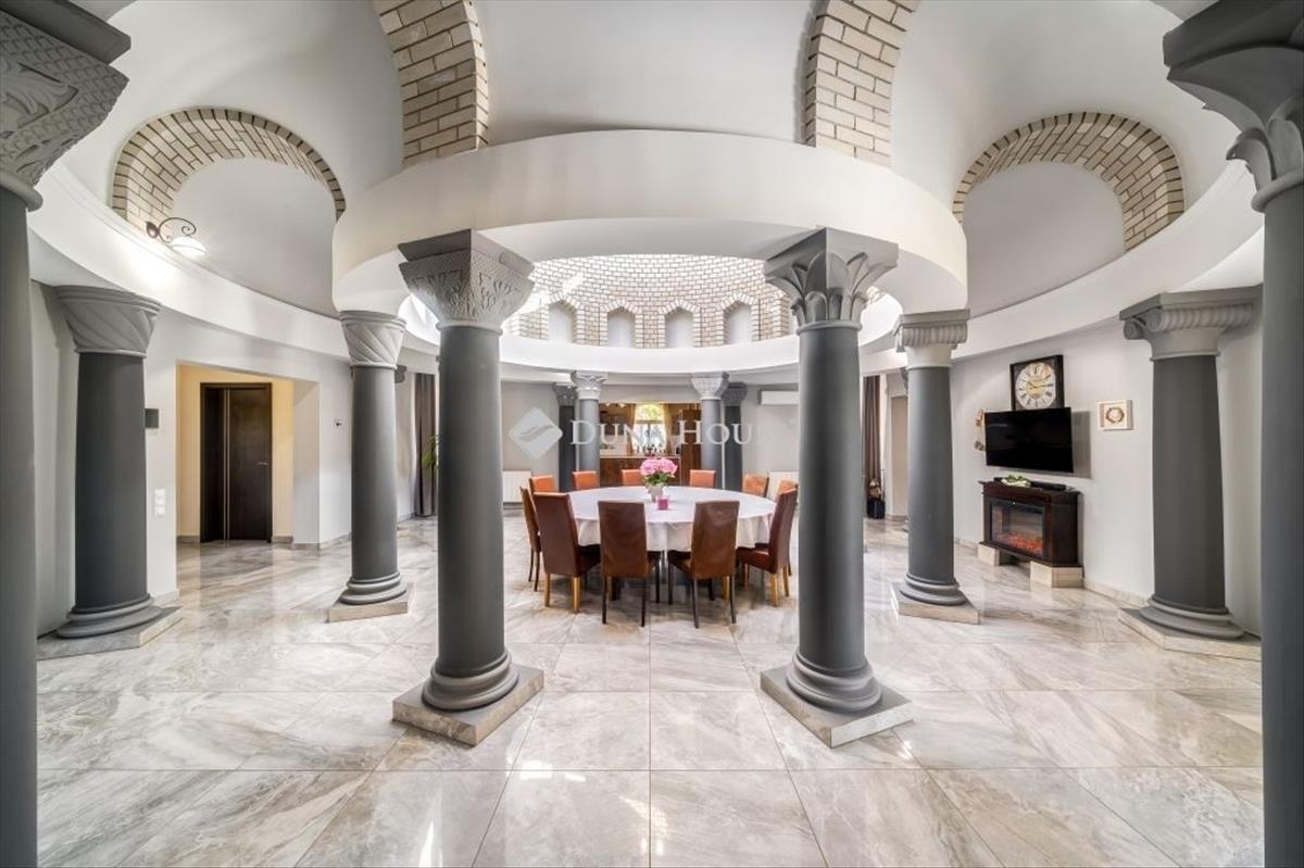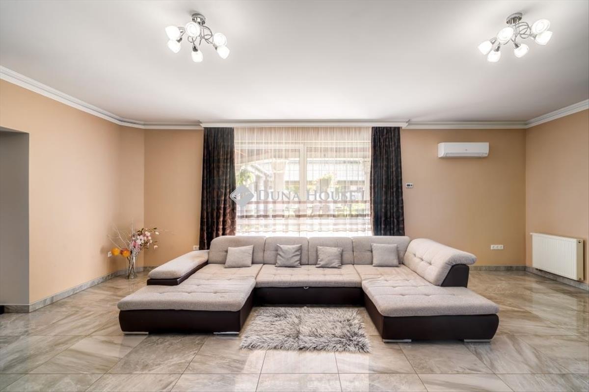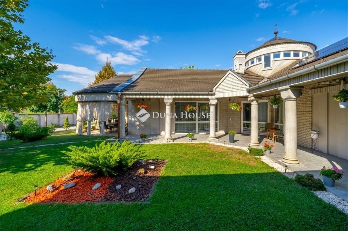 Tisztelt Érdeklődő! Engedje meg, hogy figyelmébe ajánljak egy igazán különleges ingatlant, amely egyszerre ötvözi a modern kényelmet és a klasszikus eleganciát. a közel 270 m²-es lakótér egy szinten helyezkedik el, tágas és jól átgondolt alaprajzzal. a központi étkezőterem impozáns oszlopsorral övezve különleges atmoszférát teremt, ideális családi összejövetelekhez és vendégek fogadásához. a nappali világos és tágas, a hálószobák kényelmes méretűek, a fürdőszobában jakuzzis fürdőkád található, emellett infraszauna és praktikus háztartási helyiség is szolgálja a mindennapokat. Az ingatlan közel 2 100 m²-es telken helyezkedik el, ahol fedett teraszok, napozóterasz és parkosított kert biztosítanak nyugodt pihenést. a medence elhelyezésére az előkészítés megtörtént. a ház korszerű gépészeti megoldásokkal felszerelt: napelemek, hőszivattyús fűtés, klíma és elektromos autó töltő gondoskodnak a fenntartható és gazdaságos működésről. Az épület energetikai besorolása a+, amely hosszú távon is előnyös választássá teszi. További értékek:- Különleges építészeti kialakítás oszlopsorral- Jakuzzis kád- 6 személyes kültéri infraszauna- kültéri jakuzzi- Kerti tároló- 2 nagy teljesítményű robotfűnyíró- Napelem és hőszivattyú (10 kW-os tárolóval, H-tarifával) Energiatakarékos gázcirkó- Elektromos autó töltő- Biztonsági rendszer: kamera, riasztó, biztonsági ajtóEz az ingatlan valóban különleges, tökéletes választás mindazok számára, akik tágas tereket, biztonságot és modern megoldásokat keresnek. Amennyiben felkeltette érdeklődését, szívesen állok rendelkezésére egy személyes bemutatás során. Üdvözlettel:Széll EmesePrémium Ügyfelek Privát Ingatlanosa