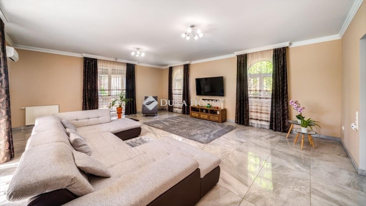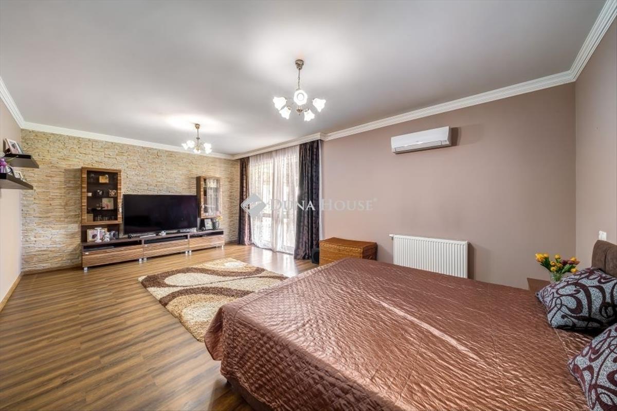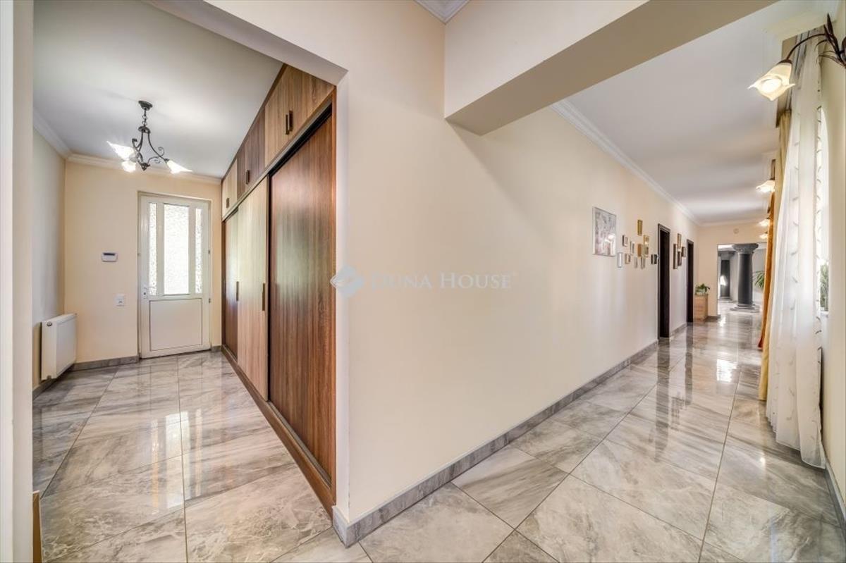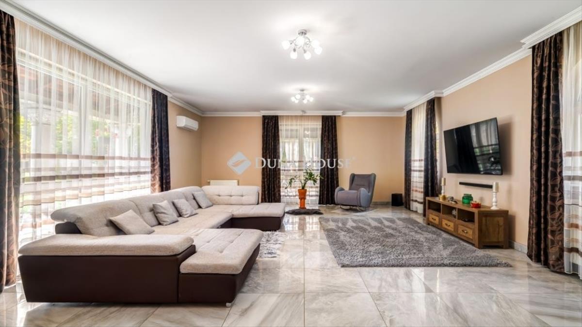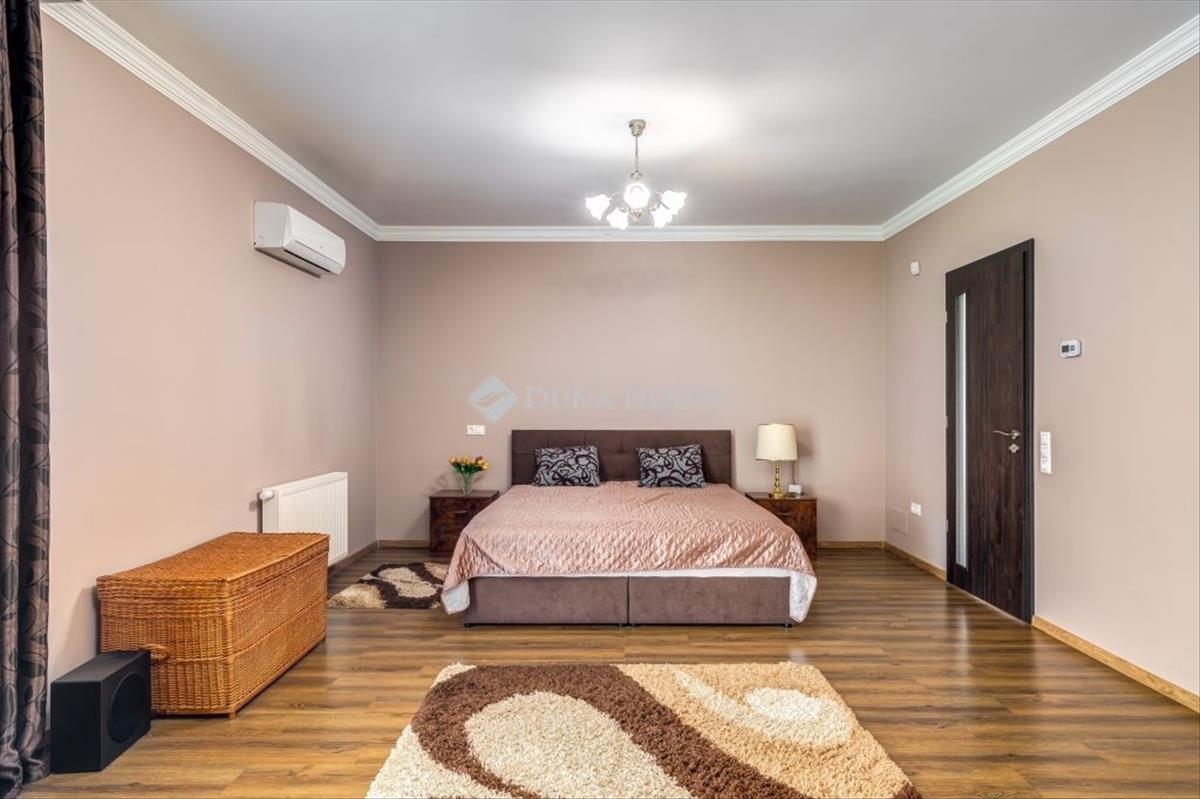 Tisztelt Érdeklődő! Engedje meg, hogy figyelmébe ajánljak egy igazán különleges ingatlant, amely egyszerre ötvözi a modern kényelmet és a klasszikus eleganciát. a közel 270 m²-es lakótér egy szinten helyezkedik el, tágas és jól átgondolt alaprajzzal. a központi étkezőterem impozáns oszlopsorral övezve különleges atmoszférát teremt, ideális családi összejövetelekhez és vendégek fogadásához. a nappali világos és tágas, a hálószobák kényelmes méretűek, a fürdőszobában jakuzzis fürdőkád található, emellett infraszauna és praktikus háztartási helyiség is szolgálja a mindennapokat. Az ingatlan közel 2 100 m²-es telken helyezkedik el, ahol fedett teraszok, napozóterasz és parkosított kert biztosítanak nyugodt pihenést. a medence elhelyezésére az előkészítés megtörtént. a ház korszerű gépészeti megoldásokkal felszerelt: napelemek, hőszivattyús fűtés, klíma és elektromos autó töltő gondoskodnak a fenntartható és gazdaságos működésről. Az épület energetikai besorolása a+, amely hosszú távon is előnyös választássá teszi. További értékek:- Különleges építészeti kialakítás oszlopsorral- Jakuzzis kád- 6 személyes kültéri infraszauna- kültéri jakuzzi- Kerti tároló- 2 nagy teljesítményű robotfűnyíró- Napelem és hőszivattyú (10 kW-os tárolóval, H-tarifával) Energiatakarékos gázcirkó- Elektromos autó töltő- Biztonsági rendszer: kamera, riasztó, biztonsági ajtóEz az ingatlan valóban különleges, tökéletes választás mindazok számára, akik tágas tereket, biztonságot és modern megoldásokat keresnek. Amennyiben felkeltette érdeklődését, szívesen állok rendelkezésére egy személyes bemutatás során. Üdvözlettel:Széll EmesePrémium Ügyfelek Privát Ingatlanosa