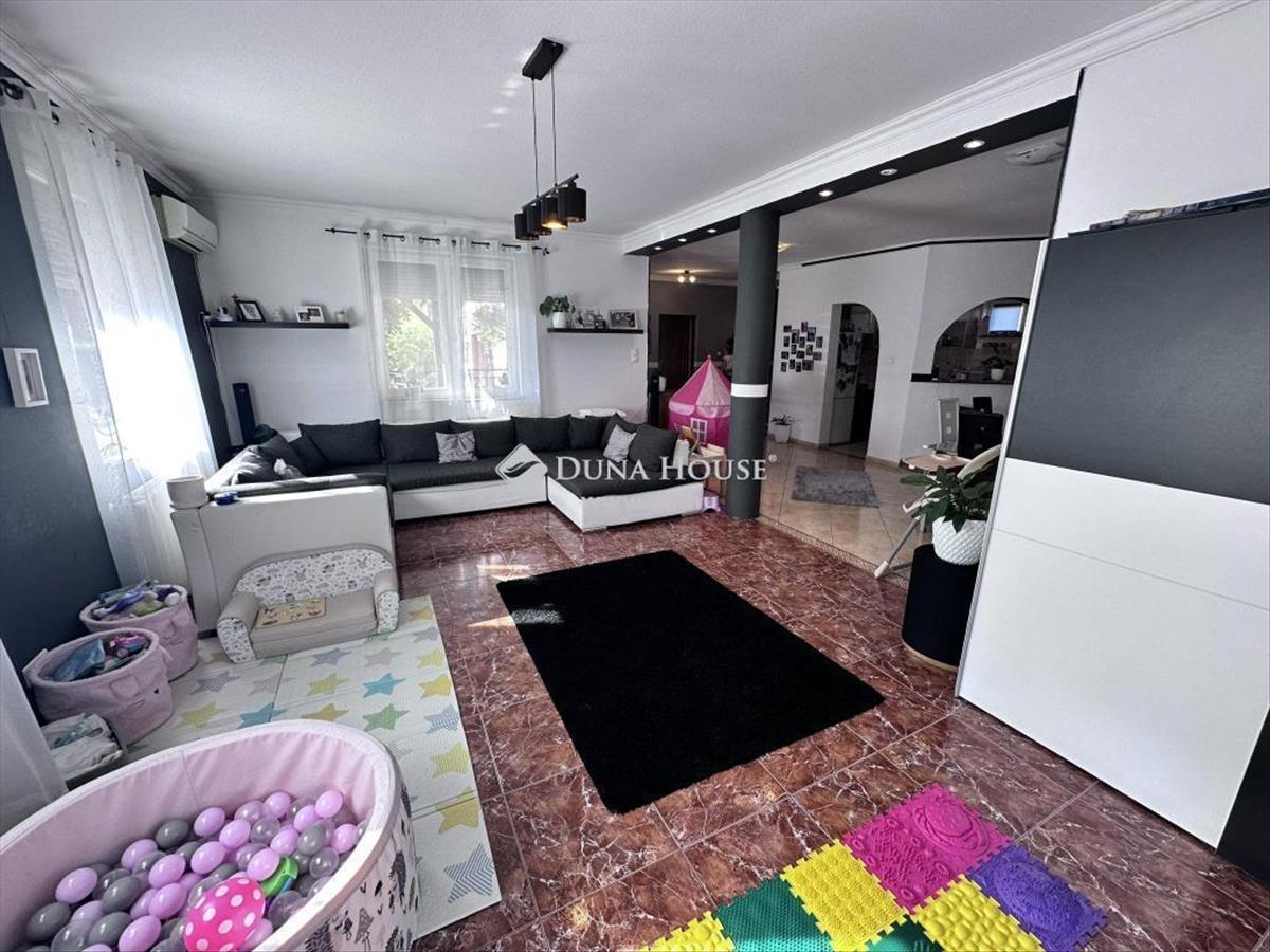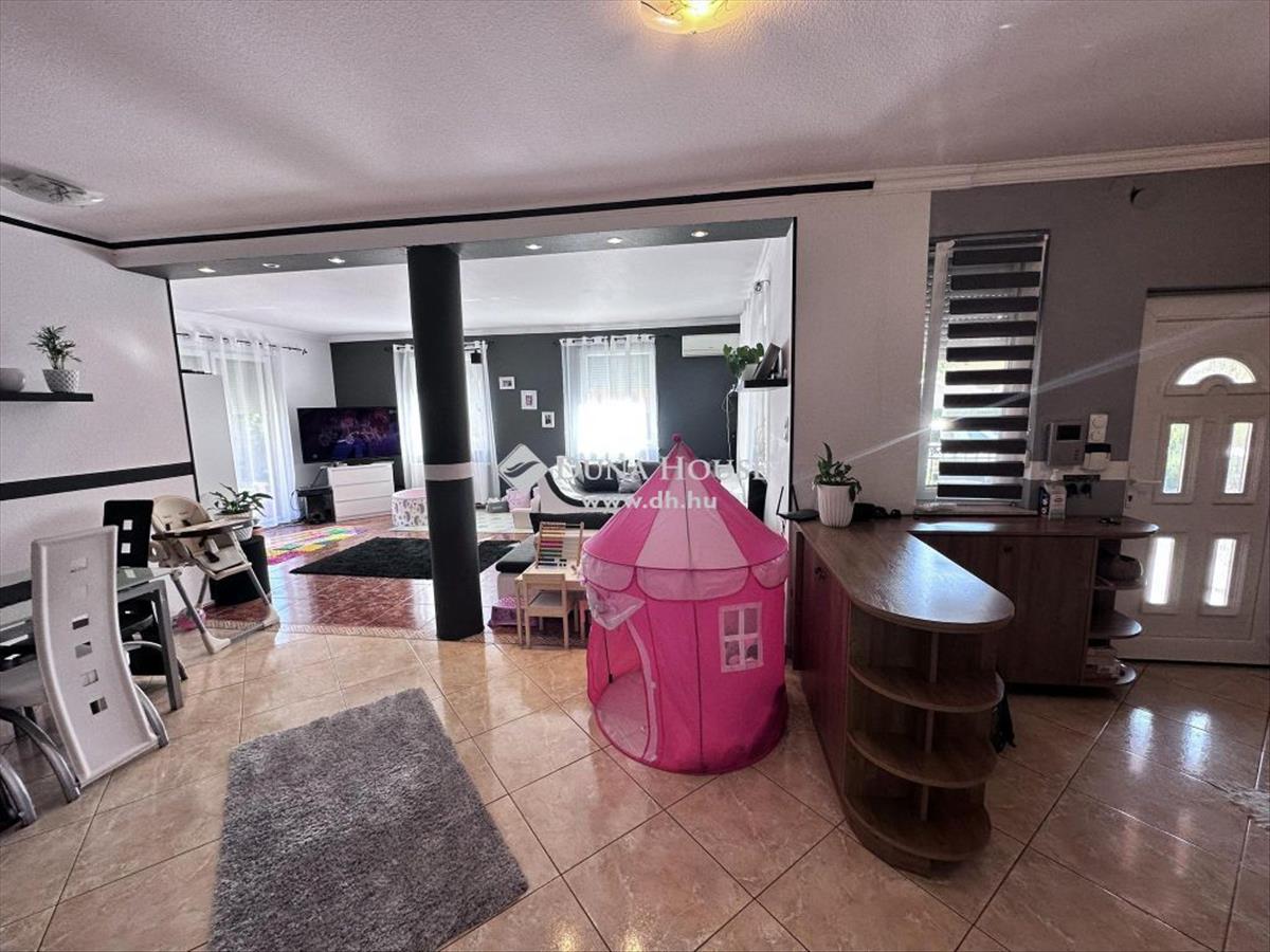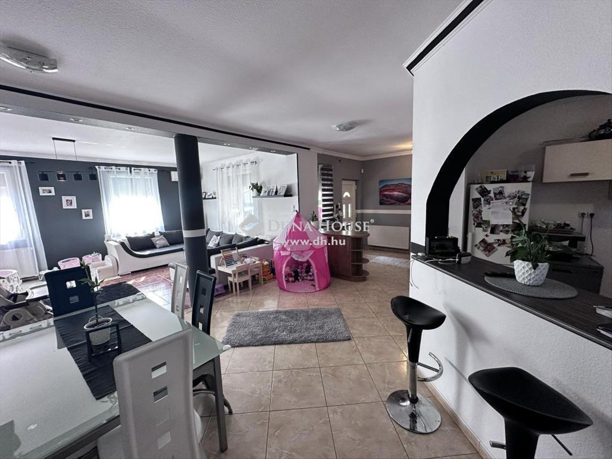 Az otthon egy 622 nm -es összközműves telekre épült 2003-ban Ytong falazattal, Bramac bretoncserép fedéssel. a földszinti lakrész 140 nm -es melynek belső elosztása előszoba, nappali, konyha, étkező, wc, fürdő, két hálószoba, két terasz, garázs, kazánház-mosókonyha-wc. a fenti lakrész elosztása amerikai - konyhás - nappali, kamra, fürdő, wc, kazánház, két külön nyíló szoba, gardrób, közlekedő, erkély. Mindkét lakrész fűtését és melegvíz ellátását gáz cirkó biztosítja. a lenti részen padlón és lapradiátorokon keresztül történik a hőleadás. Az emeleten lapradiátorokon keresztül történik a fűtés. Az otthont eddig két testvérpár lakta. De nagycsaládosok számára is tökéletes választás lehet ez a napfényes tágas kedves kis ingatlan. a kert parkosított melynek öntözését öntözőrendszer biztosítja. a parkosított telek egyik sarában sütögető és bográcsolló helyiség került kiépítésre. Így a család és a barátok kedvükre sütögethetnek és pihenhetnek ebben a szép zöld intim környezetben. a garázson lévő ajtó és a telere vezető nagykapu elektromos. Az ingatlan hűtő-fűtő klímával ellátott.