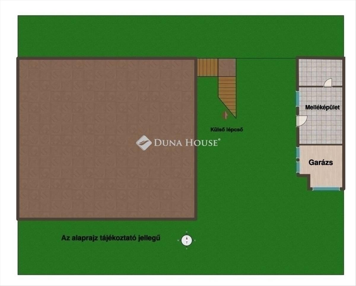 Az emelet külső lépcsőn keresztül is megközelíthető, így a két lakrész teljesen elkülöníthető.