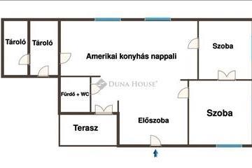 A két szoba egymásból és külön-külön is nyílik, kialakításra került az amerikai konyhás nappali élettere.
