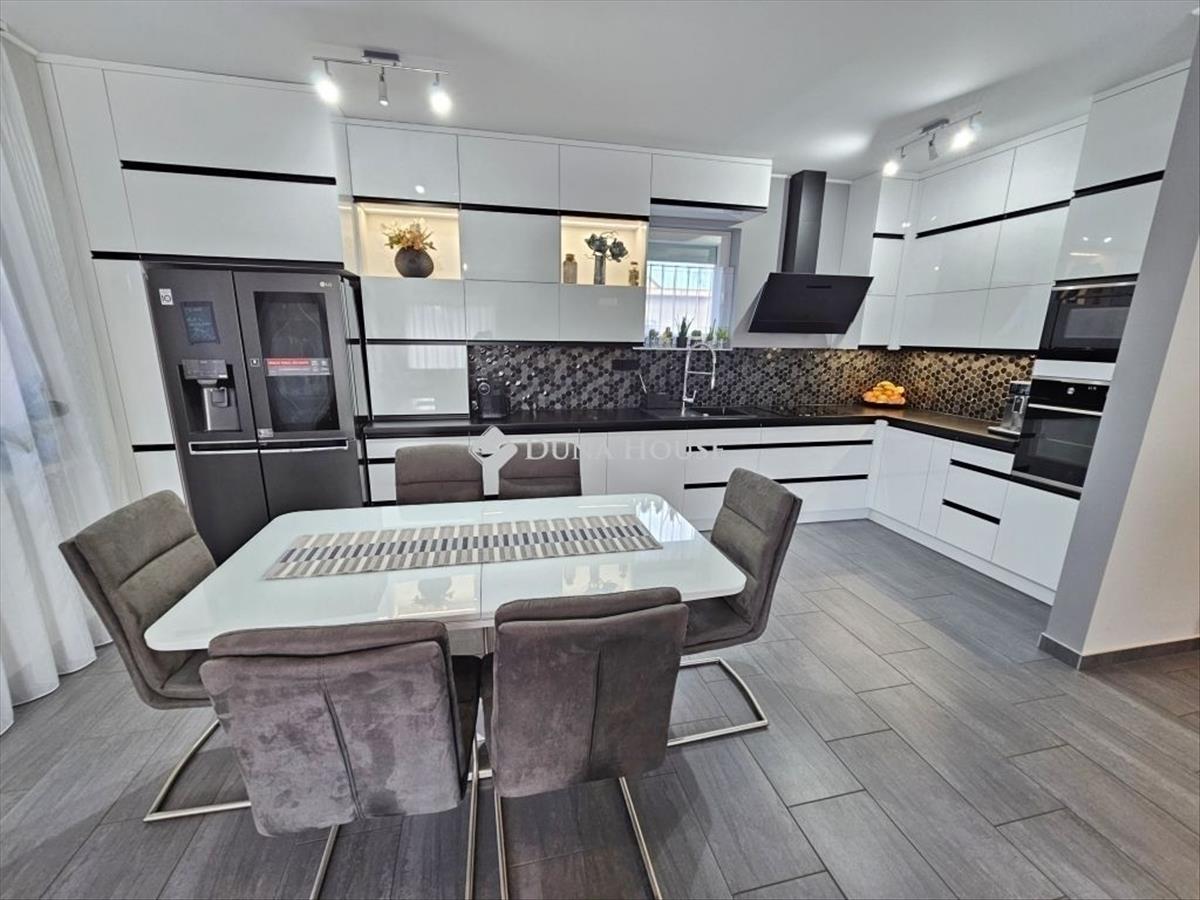 Kompromisszummentes, intim luxusra vágyik kertvárosi környezetben? Itt a kivételes lehetőség: minden igényt kielégítő, kivételes, tégla építésű, br. 132m2-es, 4 szobás, klímás, cirkós és vegyes tüzeléses (padló+radiátorfűtés), szigetelt, thermo ablakos, cseréphéjazású, duplakomfortos, garázzsal és fedett beállóval is rendelkező, nagy teraszos, körbejárható, önálló, családi ház eladó Üllő csendes, nyugodt, Budapest felől könnyebben megközelíthető, kiváló, kertvárosi hangulatú utcájában, 699m2-es telken! Hitelezhető (3%-os is), tehermentes, jogilad rendezett ingatlan eladó! Új otthona pár éve teljes körű felújítást is kapott (2021), festés nélkül költözhető, beépített bútorokkal, beépített gardróbbal, teljesen gépesített, fedett teraszkapcsolattal rendelkező, 33m2-es amerikai konyhás nappalival, 2 fürdő+WC-vel, 3 hálószobával, elektromos redőnyvezérléssel, medencével, számtalan további extrával és szinte minden részletében átgondolt tervezéssel lett megvalósítva. Lehetne írni hangzatos, elcsépelt szavakat, mint az álomház, magas minőségben, vagy igényes ékszerdoboz, de beszéljenek inkább az ingatlan kivételes tulajdonságai alábbiakban (a teljesség igénye nélkül). Beltér:-2021-ben teljes felújítás (2011-es építés)-BWT vízlágyítórendszer (bejövő ágon, vízkőmentes, szűrt víz mindenhol)-Elektrolux gépesített konyha (beép. Mosogatógép, mikró, sütő, elszívó, indukciós főzőlap)-Magasfényű, egyedileg, plafonig épített, minőségi konyhabútor (gránit mosogató)-Felújított víz-, gáz-, villanyrendszer, (körben optikai internetkábelezéssel, usb aljzat, érintőkapcsolók, stb. )-Sanier Duval kondenzációs kazán (padló és radiátoros hőleadás)-Teljesen új vegyes tüzelésű kazán (tartalék fűtés)-Extra kéménybe köthető kandalló lehetőség a nappaliban (látványkandalló helyén)-Wifi-s fűtő-hűtő Daikin klímarendszer (nappaliban rejtett)-Duplakomfortos (kádas és zuhanyzós fürdőszobák)-Monoblokkos és rejtett falitartályos WC-k (bidé funkcióval)-Okos riasztórendszer, kamerával és füstérzékelővel-beépített, padlóhoz rögzített bútor- és fegyverszéf-pakolható padlás (30m2)-minőségi billenőkapcsolók (opcionálisan érintőkapcsolók választhatók)Kültér:-2 rétegű űvegezésű thermo ablakok, elektromosan vezérelt redőnnyel, szúnyoghálóval szerelve-30-as teherhordó falazat (10cm szigetelés)-Cseréptetőhéjazás-Elektromosan autós nagykapu-30m2-es ablakos dupla garázs, közvetlen bejárattal a lakótér felé-Fedett, dupla autóbeálló (mini-padlással - extra pakolási lehetőség)-Több autónak is elegendő, viacoloros kocsibeálló-10m2 kerti tároló (szigetelt)-Előkert szeparálására belső kerítés-Fúrt kutas, automata öntözőrendszer-Kültéri hangulatvilágítás házfalon és az egész kertben-Kerti tűzrakóhely, sütögető-Medence (vízforgatóval, szűrővel, világítással szerelve)-robotfűnyíró rendszer kiépítve-. . . Stb. a beépített bútorok az ár részét képezik, de akár teljes bútorzattal megvásárolható. a magas minőségben, minden apró részletére kiterjedt figyelemmel megépített, újszerű állapotú családi otthonába, igény szerint tényleg csak a bőröndjeit kell hoznia! Nem kell kompromisszumot kötnie, hiszen az utca és elhelyezkedése is kivételesen intim és csendes: a légifolyosók megfelelő távolságra, az M4-es elkerülő és a vasútállomás is egyaránt könnyedén elérhető, de kellően távol vannak a csend és nyugalom érdekében. a ház elhelyezése és intim hátsókertje, valamint a szomszédok felől zárt kialakítás biztosítja a medencés, sütögetős, fedett teraszos pihentető napokat. Találja meg új otthonát eme szép, családi házas, nyugodt környezetben, Bp. Felől több gerincútvonalon is megközelíthető helyen Üllő kertvárosi övezetében! Infrastruktúra szempontjából is kiváló helyen van. Óvoda, iskola, vonatállomás, orvosi rendelők, üzletek, m0 körgyűrű is pár percre elérhető. Érdeklődni a hét bármely napján lehet, ha kérdése van, vagy szeretne időpontot egyeztetni, Forduljon hozzám Bizalommal! ***** Ha Hitelt Venne Fel, Vegye Fel a Legjobbtól, Személyre szabott ajánlatért hívjon, vagy küldjön üzenetet! ********** Hitel, CSOK és Babaváró ügyintézés garantáltan a leggyorsabb, legjobb feltételekkel, díjmentes előzetes tanácsadással! ***** FIX 3% lakáshitelre megvehető