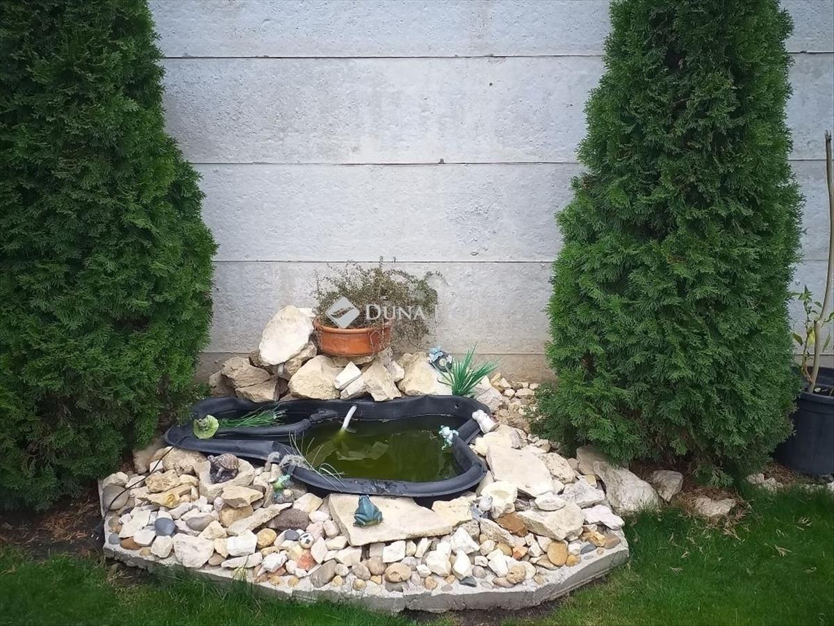 A 218 nm-es kert folyamatosan gondozott, gyepesített, pici kerti tóval, sütögető résszel és nyáron egy kis medencével biztosít nyugodt kikapcsolódást a tulajdonosoknak.