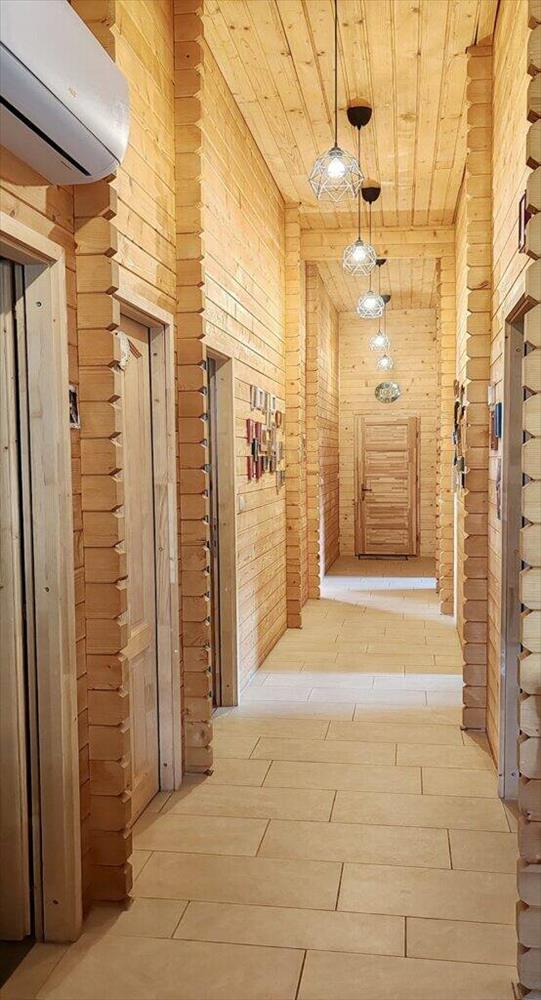 A 2020-ban épült, 200 négyzetméteres gerendaházban található egy 57 négyzetméteres duplagarázs is. Itt kényelmesen elfér a két autó mellett sok kerti eszköz, hobbi felszerelés, horgászbotok.