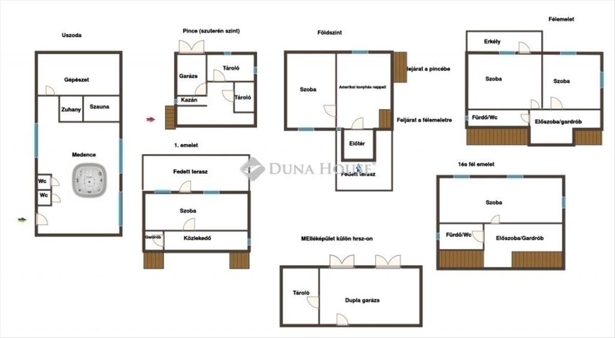 Budapesttől 30 km-re - Úri belterületén eladó 4 szintes családi ház uszodával (szauna, öltöző és mosdó helyiség + gépészeti ház) valamint pincével és dupla garázzsal, tárolókkal! Az épület amerikai konyhás nappaliból és 5 szobából áll! (151 m2)