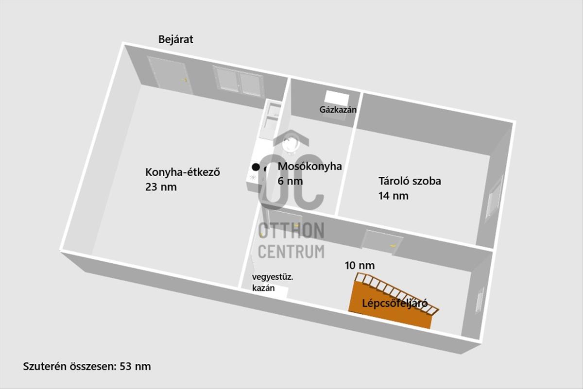 A kiváló állapotú ingatlan 145 nm hasznos alapterületű, melyből a lakótér 92 nm , a ház alatt található szuterén rész 53 nm .