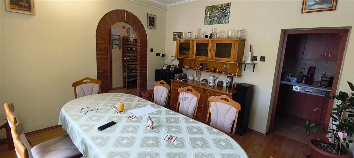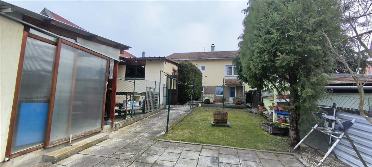Úrkút csendes utcájában, közel a település központjához, eladó egy tégla építésű, jó elrendezésű, 4 szobás ikerház.