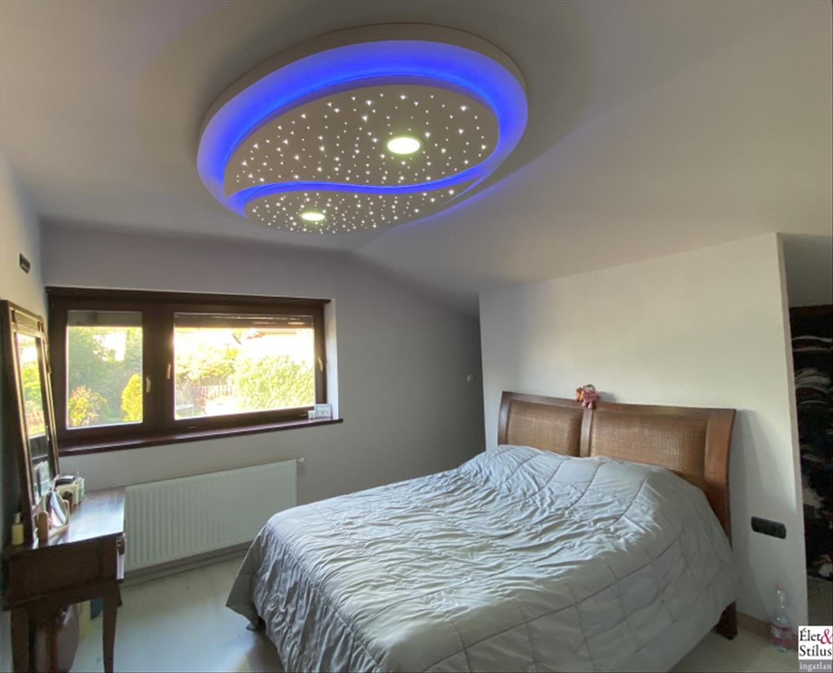 Exták terén, szó szerint a bőség zavarával küzdünk. Új, gépesített konyhánkban- amelyból külön kamrahelyiségünk is nyílik - beépített sütő, beépített mikró, 12 személyes mosogatógép, indukciós főzőlap, inox hűtő található. Háztartási helyiségünkben mosógép és szárítógép, szobáinkban rejtett és design világítás, ablakainkon elektromos redőnyök, tetőnkön napelemrenszer, vadonatúj kondenzációs kazán, a+ energetikai besorolás, minőségi beltéri ajtók, minden szobában légkondícionáló emeli a ház értékét, növeli az ottlakok komfortérzetét.
