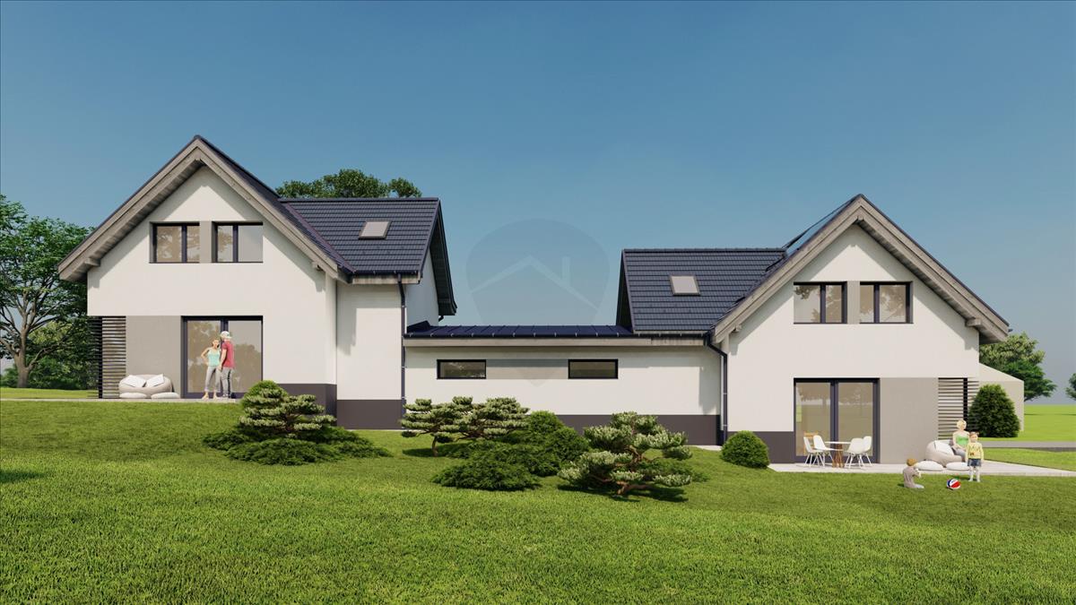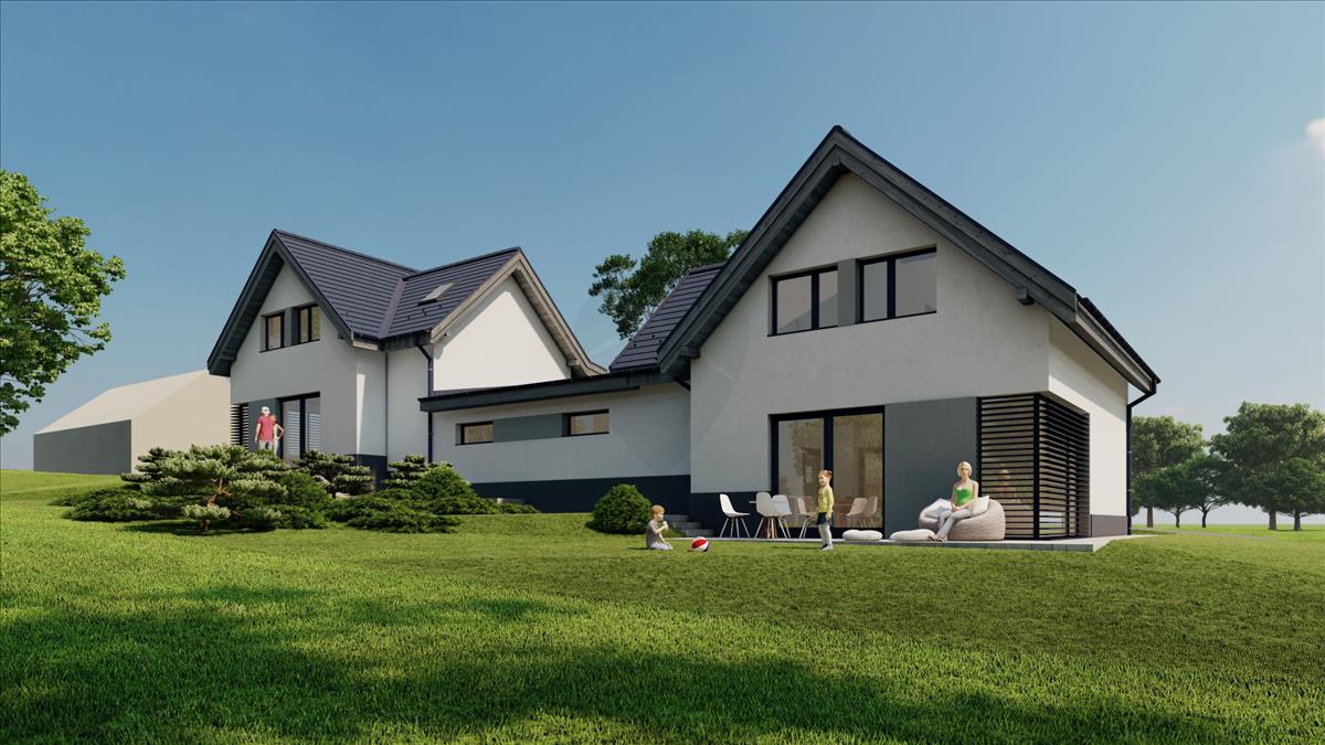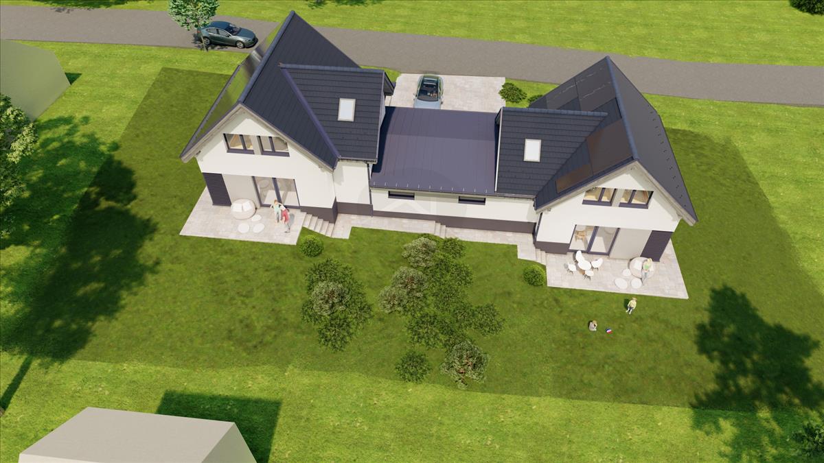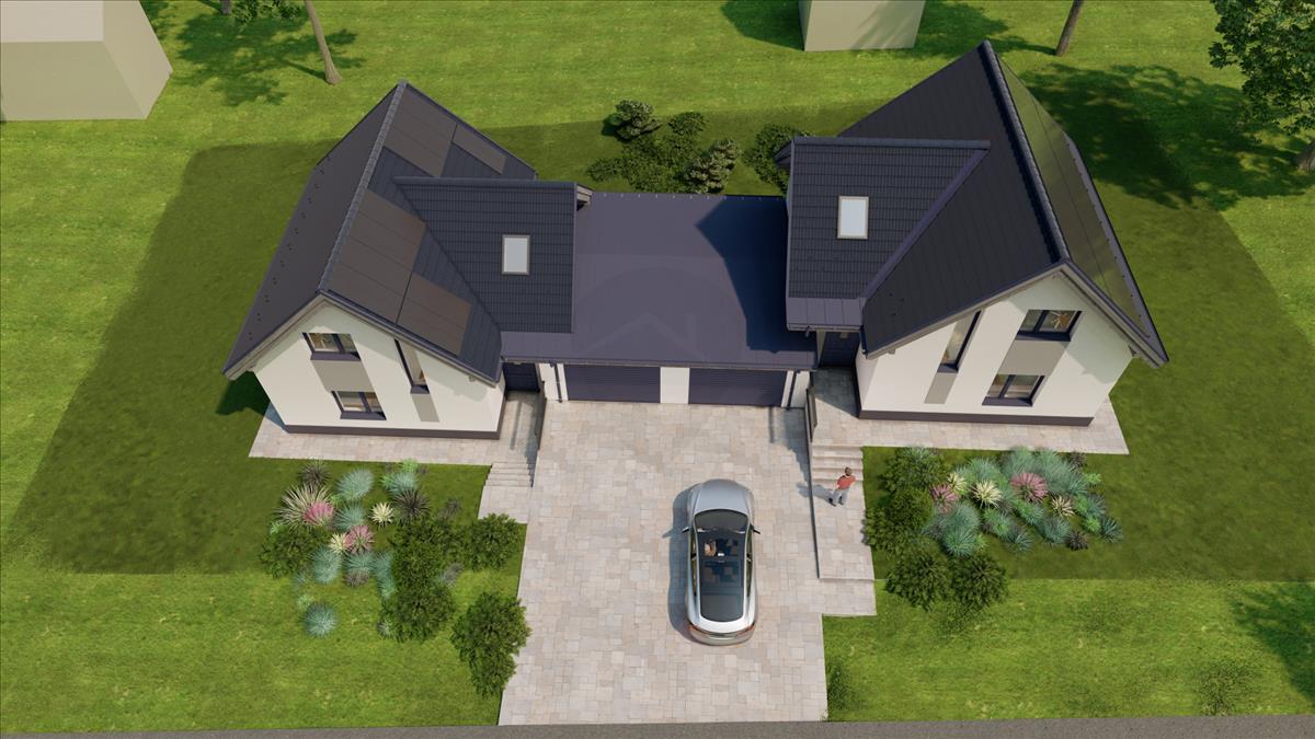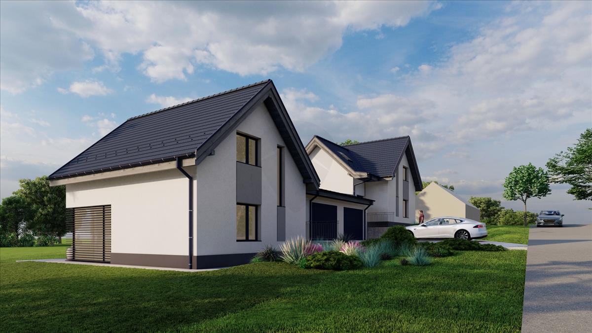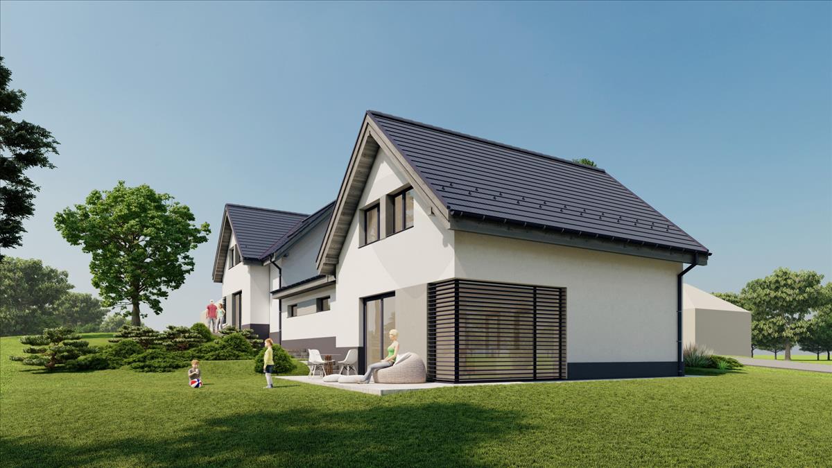 Eladó Ikerház Ürömön csendes családias környezetben, 2 x 114 m2. Gondosan megtervezett családbarát elosztás, egyedi méretezésű ablakok gondoskodnak a kiváló hangulatról. Egy lakásban z alsó szinten egy szoba, egy fürdőszoba toalettel, és egy nappali-konyha található, az emeleten 3 szoba egy fürdőszoba toalettel.