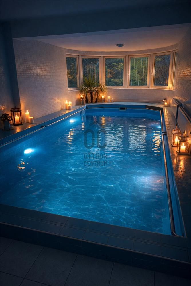 Az ingatlan valódi különlegessége a saját beltéri medence és szauna, amely egész évben wellness élményt biztosít, teljes intimitásban. a tágas nappaliban található kandalló meghitt hangulatot teremt a téli estékhez, miközben a nagy üvegfelületek világos, napfényes tereket biztosítanak.