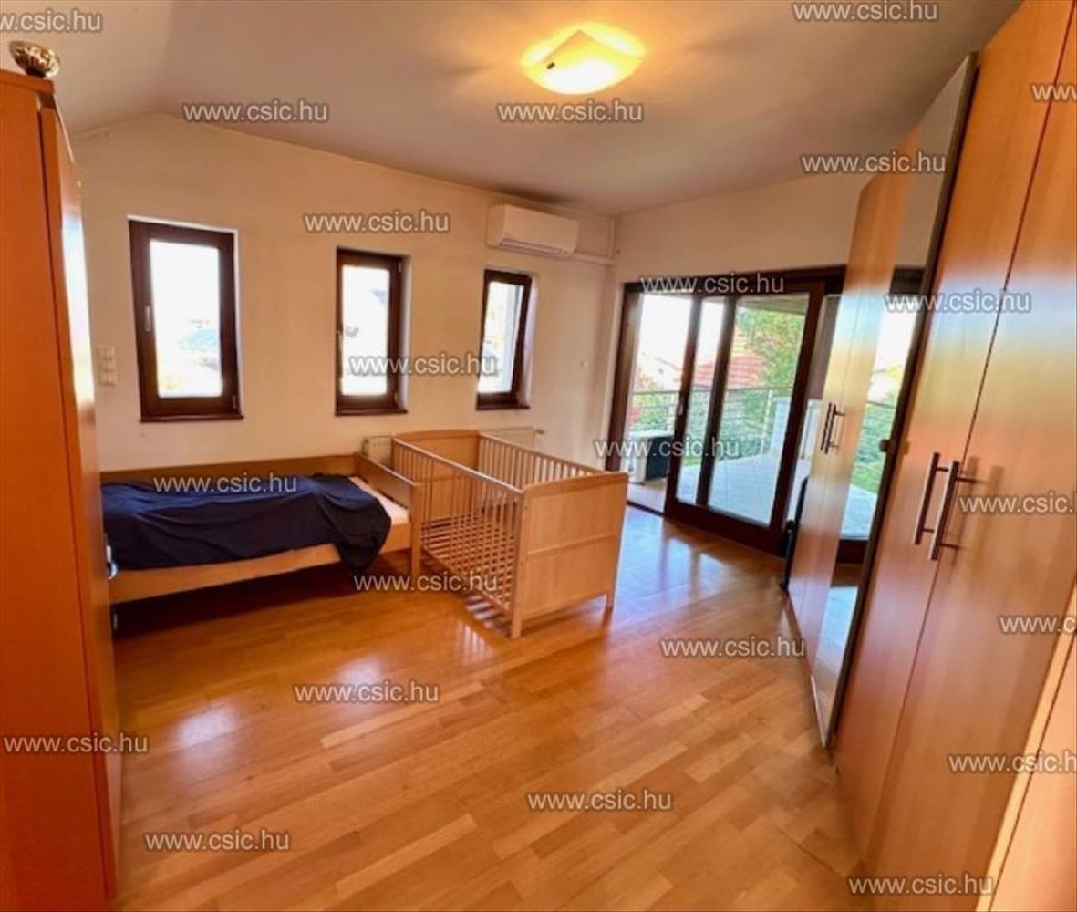 Felső szint: két hálószoba, két erkély (ék és D-i tájolás), fürdő+WC