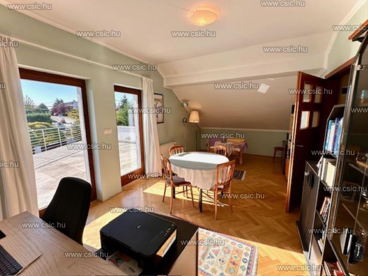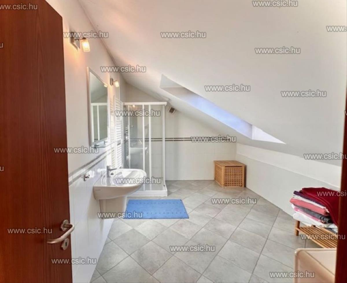 Felső szint: három hálószoba + gardrób, fürdő, külön wc, két terasz (ék és D-i tájolás).