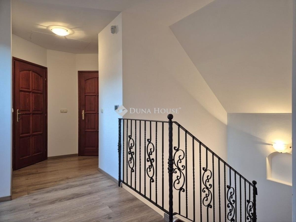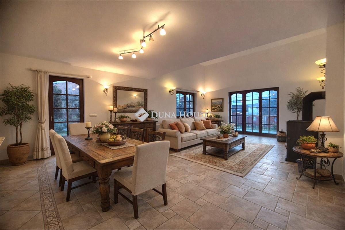 Eladó egy (hivatalos) nettó 266 m²-es (valós nettó: 279 m²), családi ház 823 m²-es rendezett telken, dupla beállásos garázzsal közvetlenül természetvédelmi terület mellett. Az ingatlan ideális választás mindazok számára, akik a nyugalomra, a friss levegőre és a természet közelségére vágynak, miközben a főváros is könnyedén elérhető. 4 Tágas hálószobával, amerikai konyhás, étkezős 6, 6 méter belmagasságú nappali - amely nagy térélményt biztosít -, 2 fürdő, 1 vendég mosdó, 2 gardrób, tágas közlekedők, nagy előszoba, dupla beállásos (43, 8 m²) fűtött garázzsal, 56 m² terasszal adjon újra életet ennek a háznak. Kényelmes elrendezés, világos, napfényes tágas helyiségek, csendes, rendezett környezet.