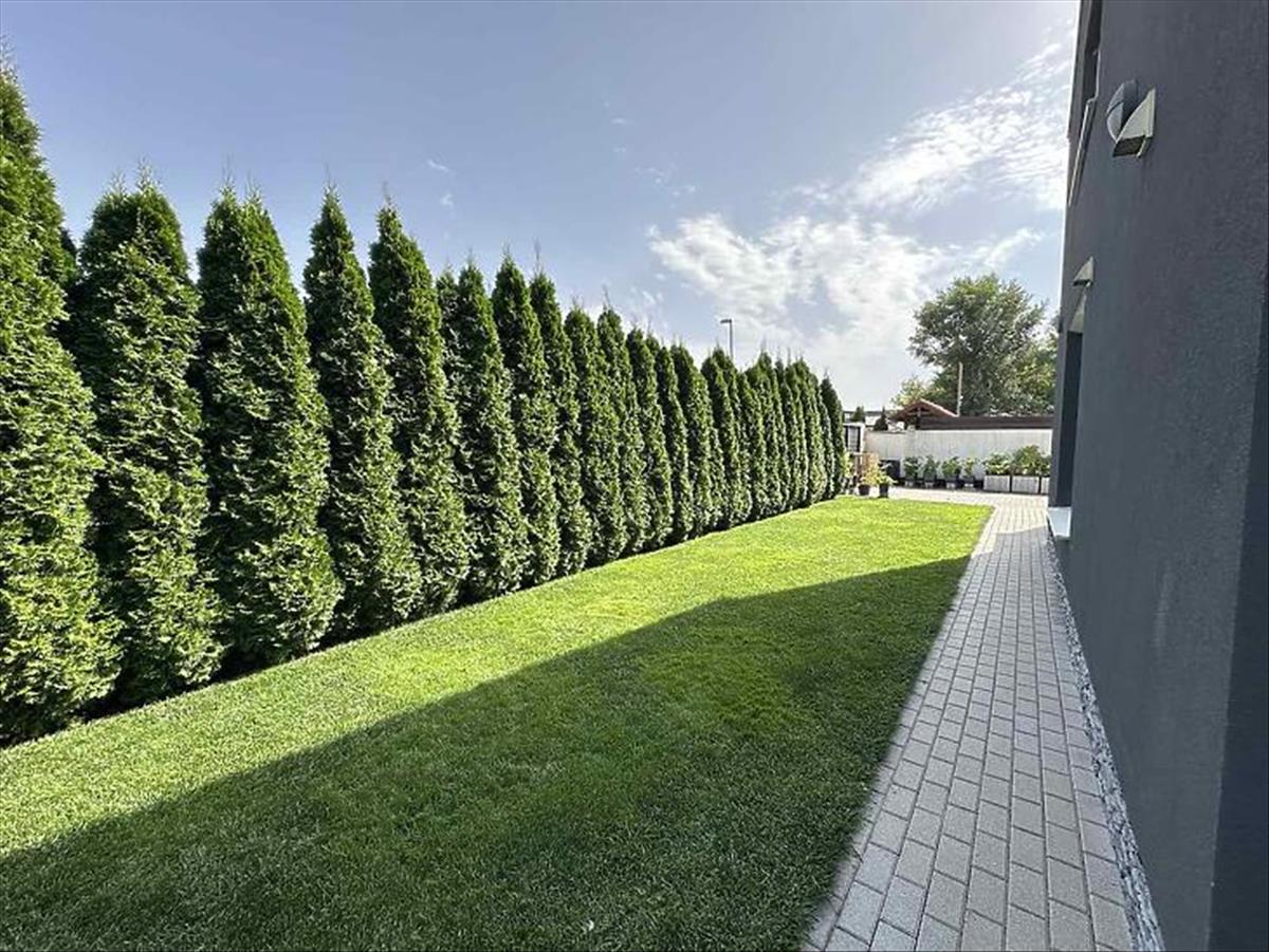 Az északkeleti fekvésű telek szépen gondozott, a kertben egy nagyméretű medence és egy épített sütögető biztosítja a tökéletes kikapcsolódás lehetőségét. a ház környezete rendezett, barátságos, az infrastruktúra kiváló: a közelben bolt, kávézó, gyógyszertár és egyéb szolgáltatások könnyen elérhetők.