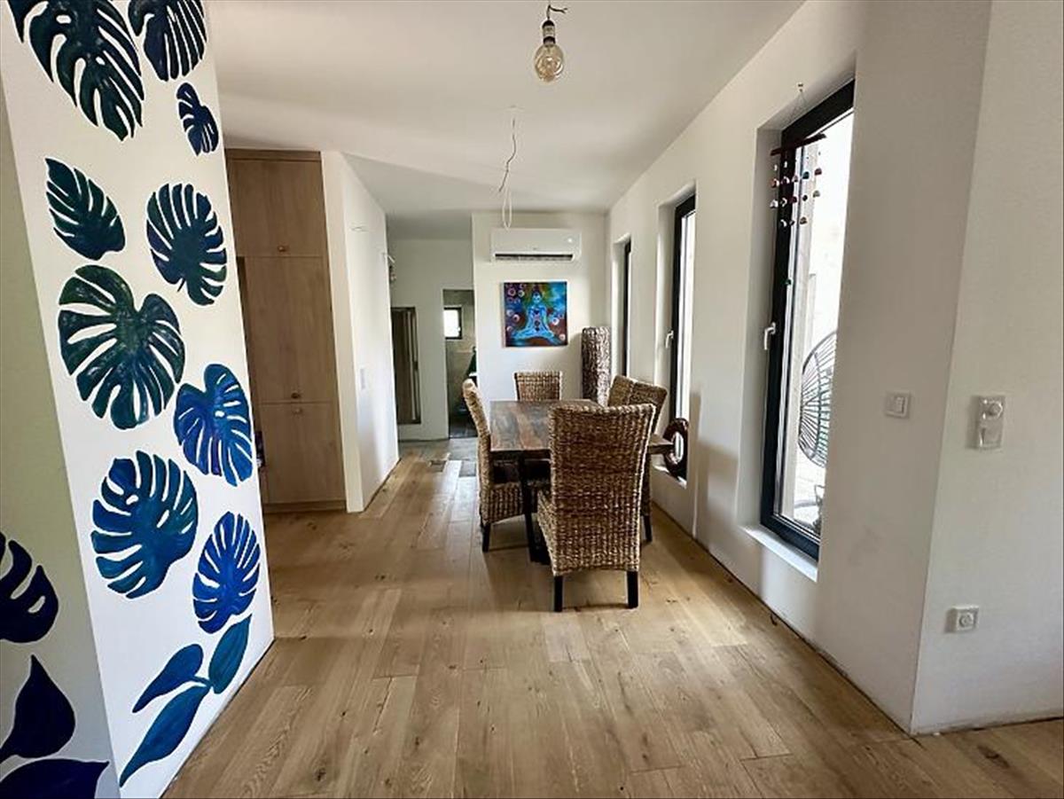 A belső elrendezés rendkívül praktikus: előszoba, étkező, konyha, tágas nappali, három hálószoba, mosókonyha, egy fürdőszoba WC-vel, valamint egy fürdőszoba és egy különálló wc is megtalálható benne. a nappaliból közvetlen kijárat nyílik a 48 nm-es teraszra, amely ideális helyszíne lehet a családi és baráti összejöveteleknek. a ház nagy része már elkészült, azonban néhány kisebb befejezendő munkálat lehetőséget ad arra, hogy az új tulajdonos saját igényei és ízlése szerint alakíthassa ki az otthonát. a délkeleti tájolásnak köszönhetően a ház egész nap világos, napfényes tereket kínál, ami tovább növeli az otthonos hangulatot.
