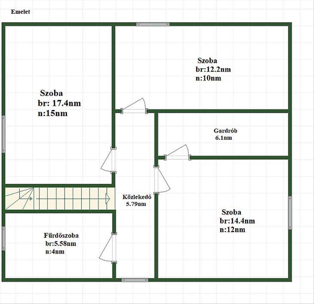 A földszinten egy előszoba, egy közlekedő, egy tágas konyha és nappali, valamint egy fürdőszoba WC-vel található. Az emeleten három külön nyíló szoba kapott helyet, továbbá egy gardrób és egy második fürdőszoba WC-vel. a ház belső terei világosak, tágasak és jól átgondolt elrendezésűek, így ideális akár nagyobb család számára is.