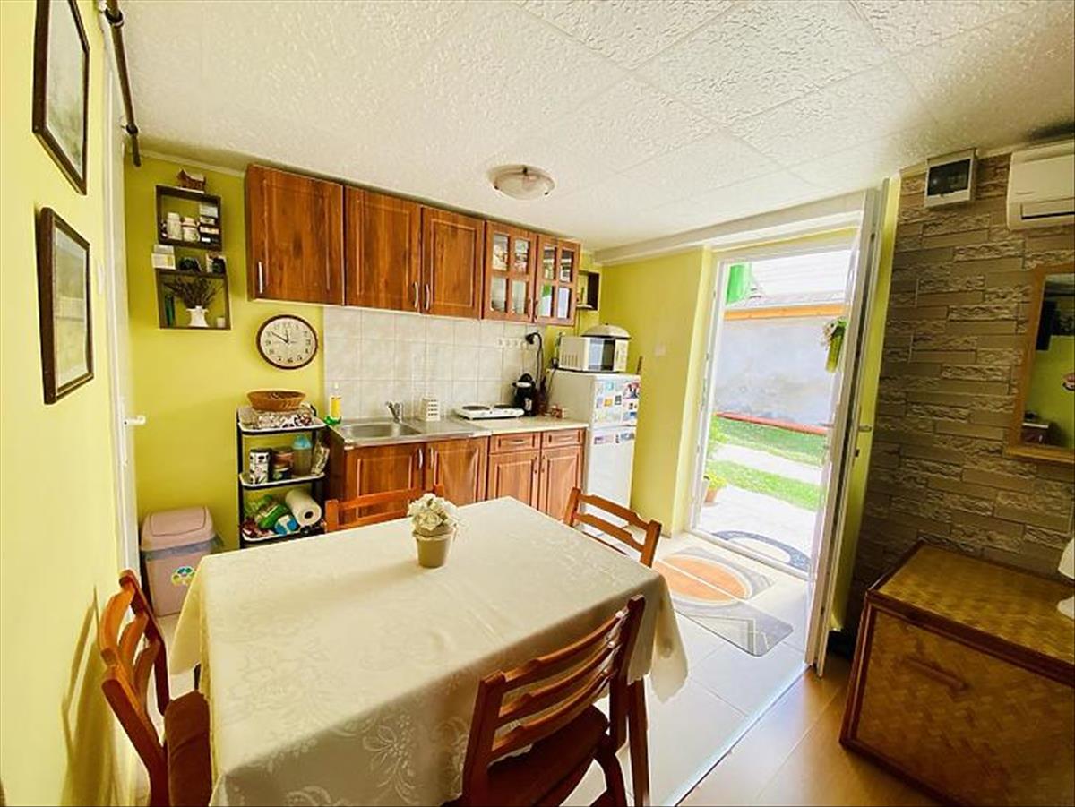 A hátsó kertben található egy garázs saját pincével, illetve egy különálló, szoba–konyha–fürdőszoba elosztású kis ház is, amely vendégházként vagy önálló lakrészként is kiválóan hasznosítható. a kisházban szintén beépítésre került egy hűtő-fűtő klíma, így az ott lakók is élvezhetik a kényelmes hőmérsékletet minden évszakban.