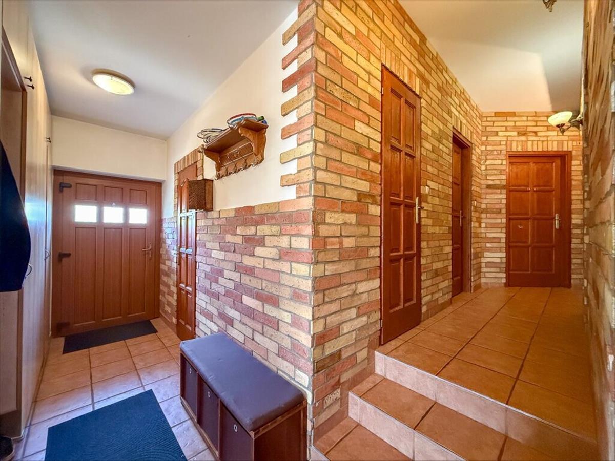 - Műanyag bejárati ajtó és fa hatású, fóliázott, műanyag 2 rétegű ablakok, külső és belső párkánnyal