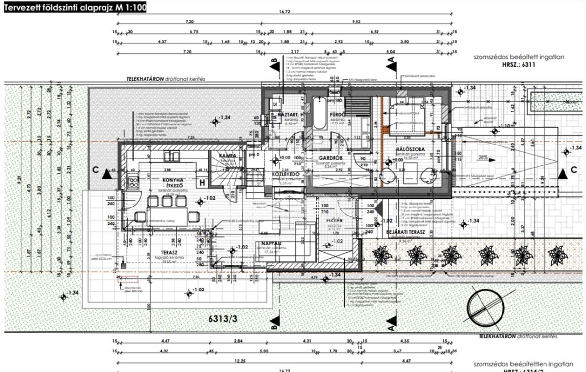 Az ingatlan 2021-ben kezdett épülni téglából, vasbeton és betongerendás födémmel, betoncseréppel. a homlokzat 15 cm-es szigetelést kapott.