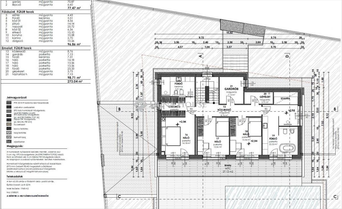 Emelet: szülői lakosztály gardróbbal és privát fürdővel, két gyerekszoba, 23 m²-es fürdő infra szaunával, plusz egy félszoba