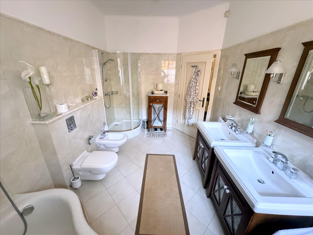 + a földszinten 3 db hálószoba, 3 fürdőszoba, egy tágas konyha-étkező és egy hatalmas 41nm-es nappali található, hozzá egy 30nm-es fedett terasz, ami kert kapcsolatos.