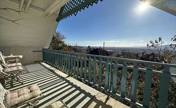 A felső szint egy hangulatos nappalit, egy hálószobát, fürdőszobát és egy erkélyt rejt, ahonnan lélegzetelállító panoráma nyílik a városra és a környező tájra. Délkeleti fekvése miatt a ház egész nap napfényben fürdik, így mindig világos és tágas tereket biztosít.