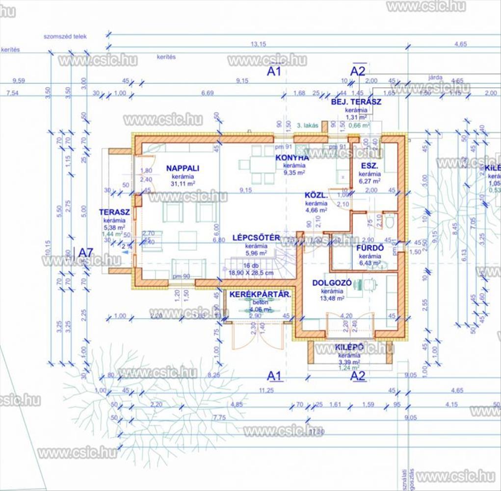 A családi ház mintegy 500 nm-es telken épült, kocsi beállóval.