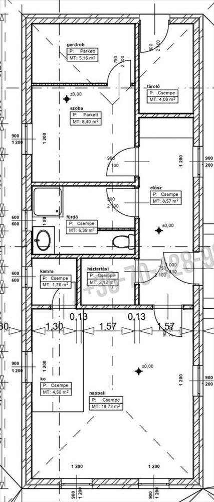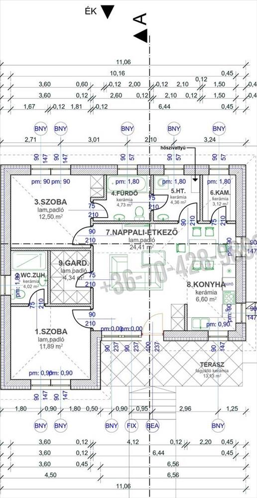 1. Tégla építésű családi ház bruttó 117 nm , plusz 24 nm -es fedett terasz.