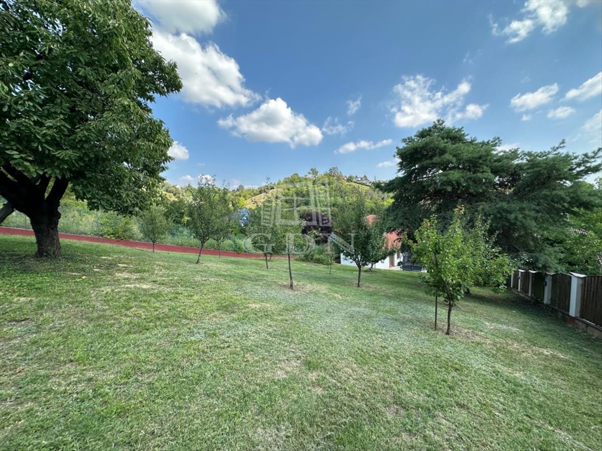 A kert parkosított, szépen rendbe tartott, elől kis játszótérrel, a hátsó részen gyümölcsfákkal.