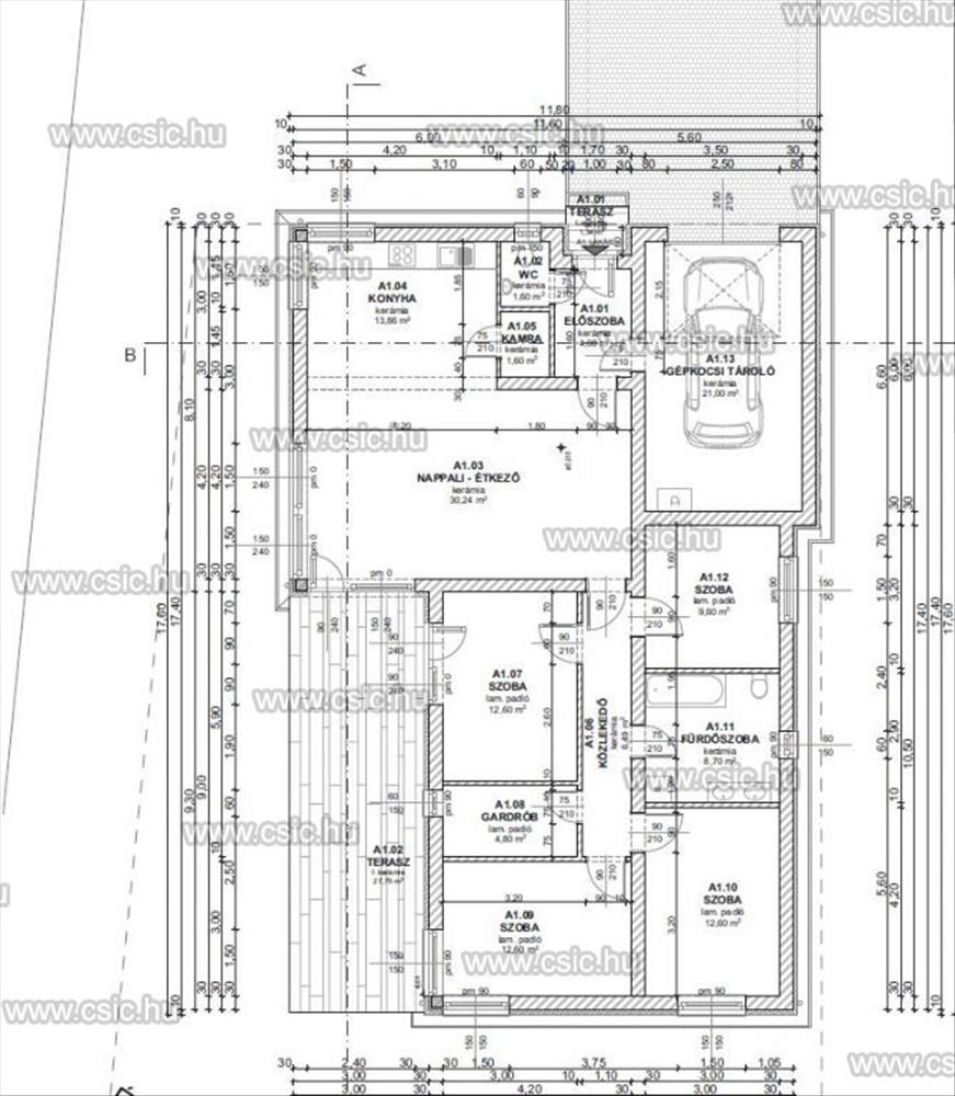 - nappali - étkező 30, 24 m2, hozzá kapcsolódó terasz 27, 75 m2