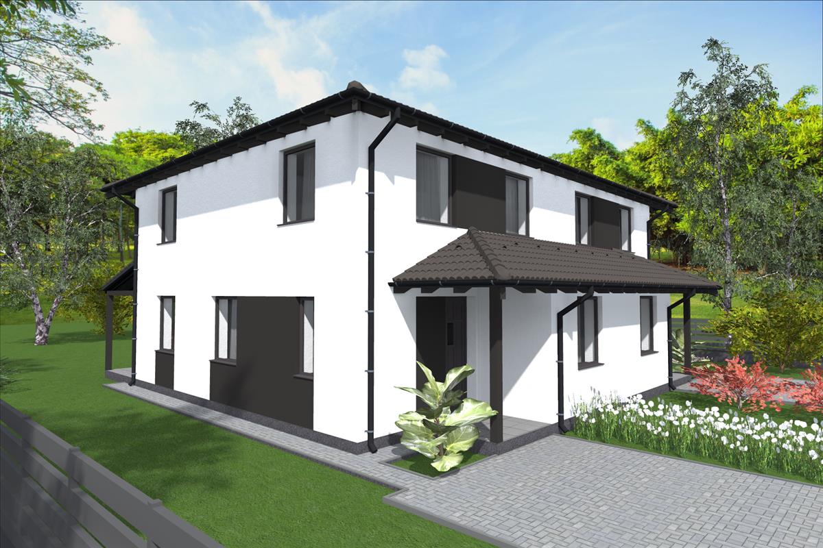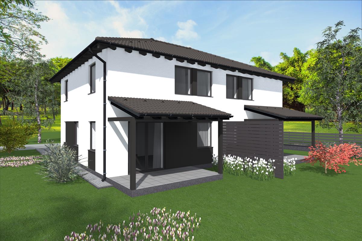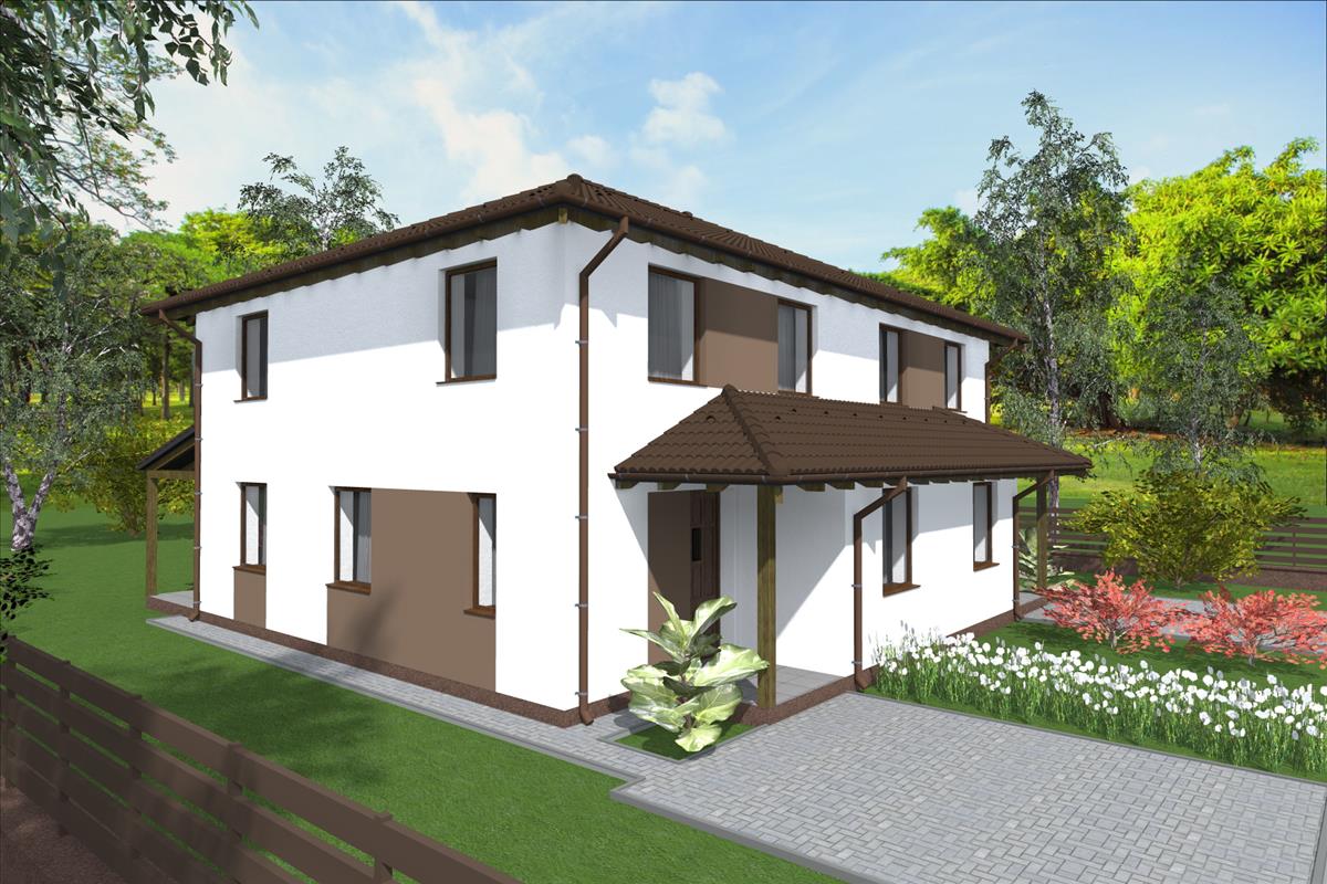 A ház tégla építésű + 12 cm dryvit szigeteléssel, hőszigetelt nyílászárókkal, hőszivattyús hűtés-fűtés rendszerrel épül meg. a belső burkolatok, szaniterek, beltéri ajtók választhatók.