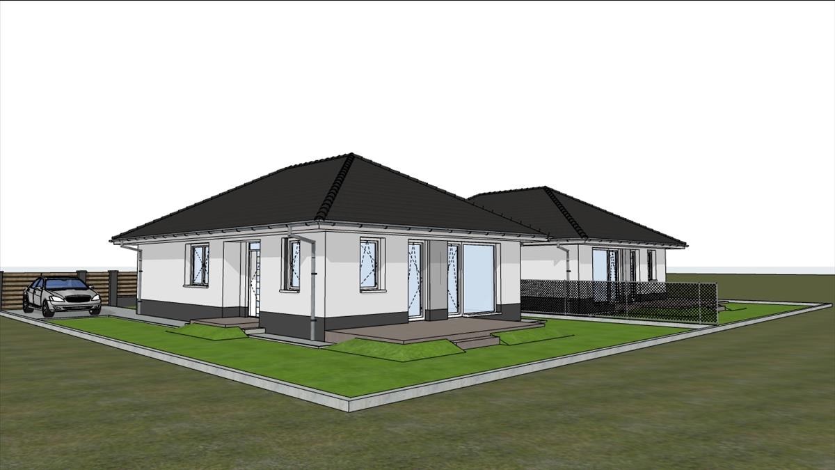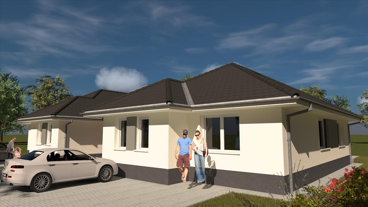 A földszintes családi ház nettó 90, 45 nm+16 nm terasz, amerikai konyhás nappali+3 hálószoba, fürdőszoba, háztartási helyiség, kamra, előszoba, külön mellékhelyiséggel épül meg.