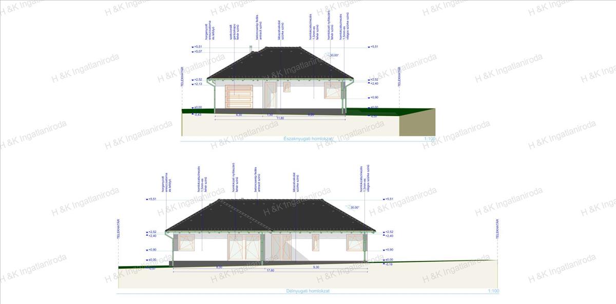 Az ingatlan homlokzati falai 30-as pth téglából épülnek, melyre 15 cm dryvit hőszigetelés kerül.