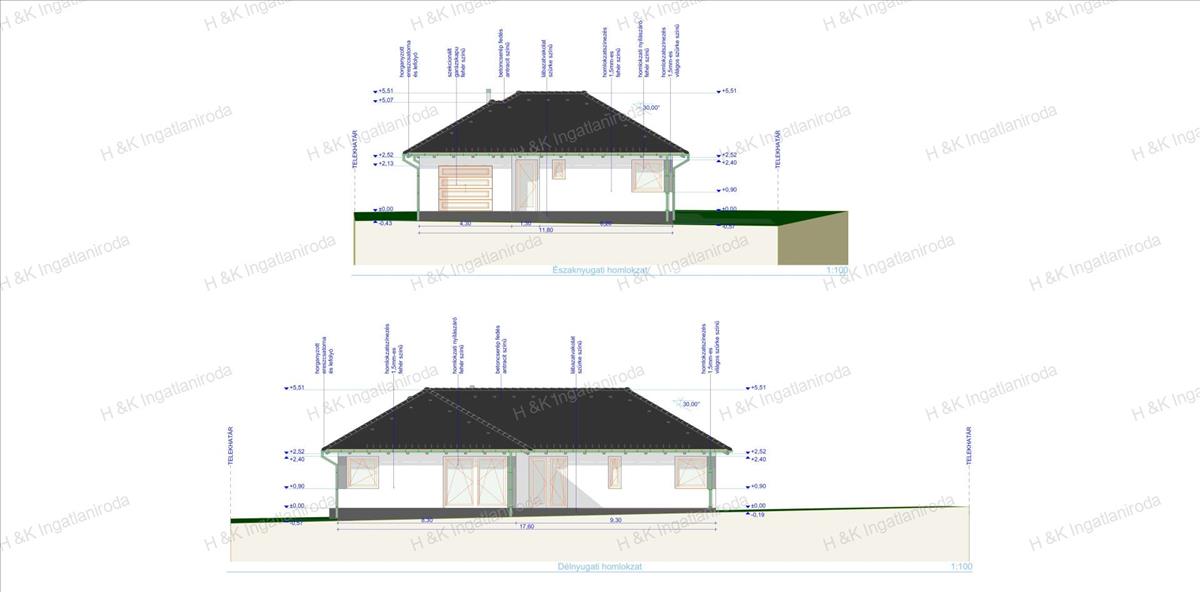 Helyiséglista: amerikai konyhás nappali 44, 1 nm, 4 szoba 12, 6 - 12, 6 - 12, 6 és 9, 6 nm, kamra 1, 6 nm, fürdőszoba 8, 7 nm, külön wc 1, 6 nm, gardrób 4, 8 nm, közlekedő 6, 49 nm, előtér 4, 08 nm, terasz 29, 09 nm, garázs 21 nm.