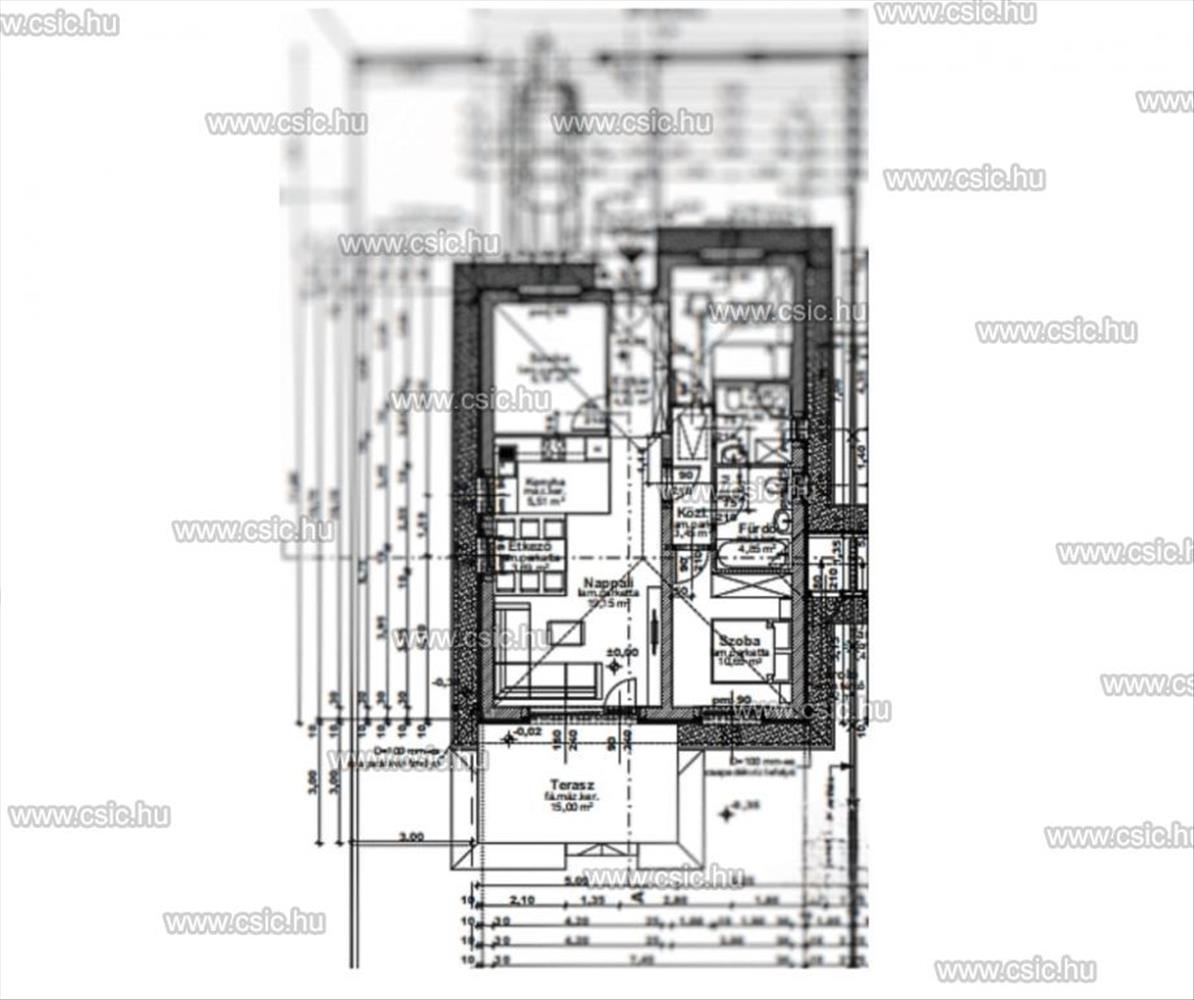 • amerikai konyhás nappali, közvetlen teraszkapcsolattal (15 m²-es terasz)