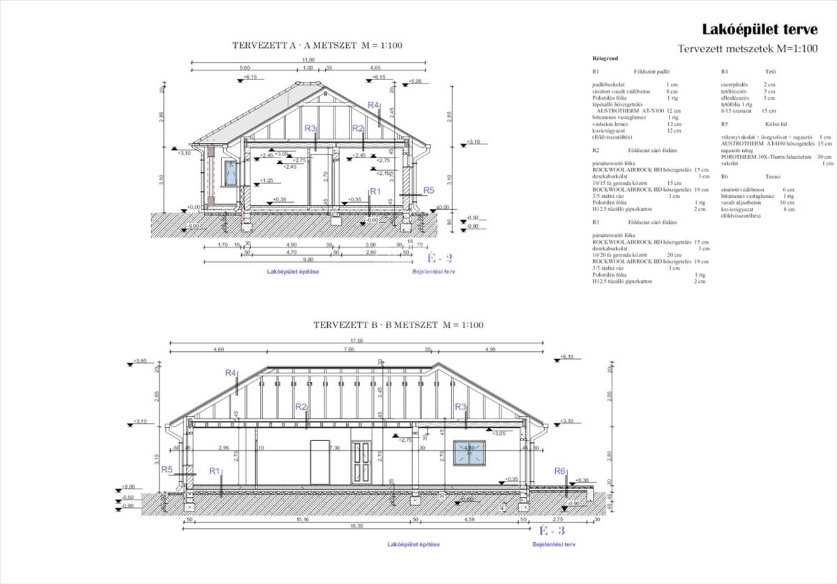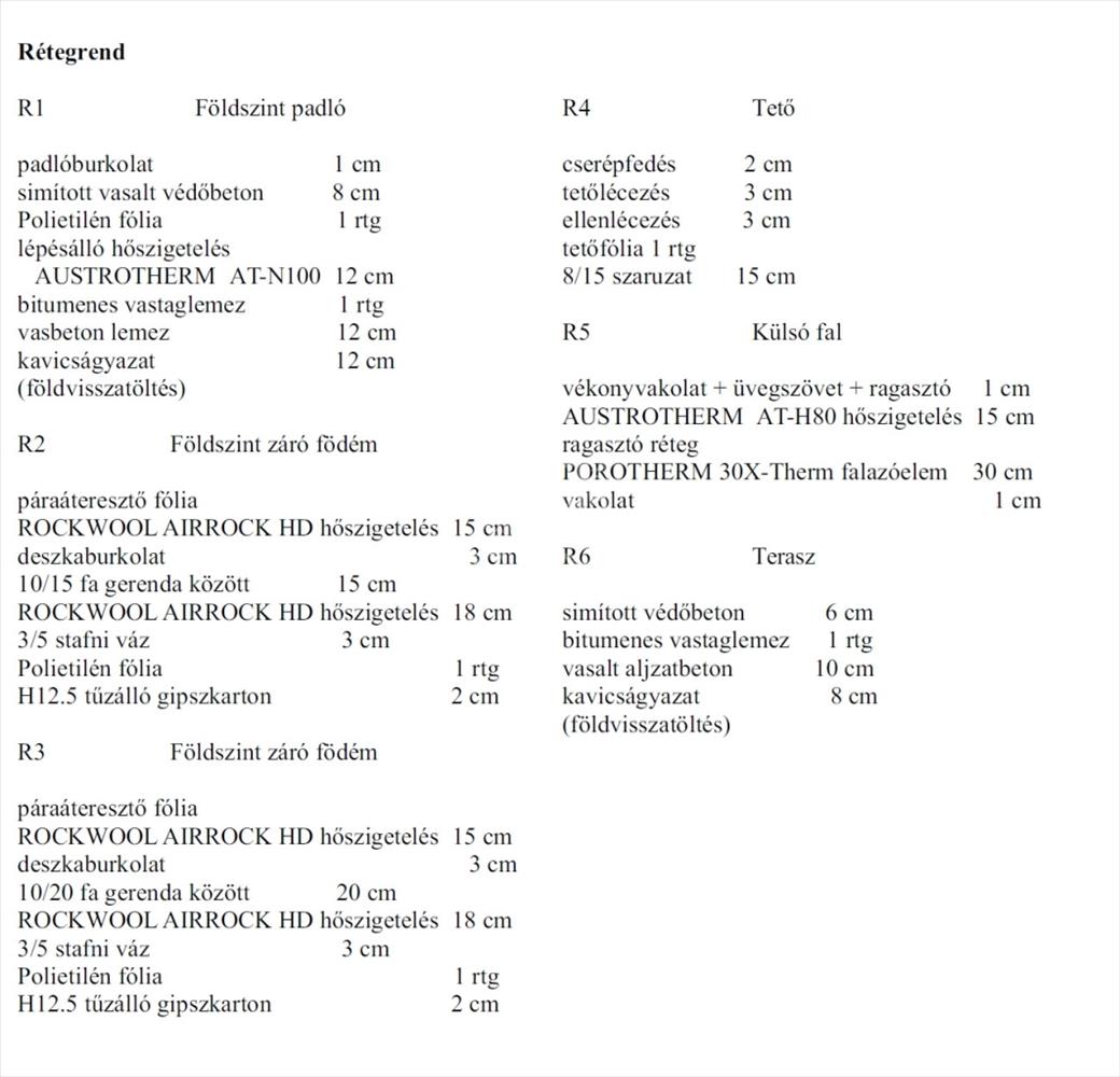 A padló 12 cm-es Austrotherm ATN-100-as lépésálló szigeteléssel, a homlokzatok 15 cm Austrotherm at-h80 dryvit szigeteléssel, a födém 33 cm Rockwool Airrock hd ádványgyapot szigeteléssel lesz ellátva.