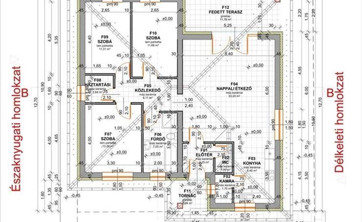A 122nm-es házban előtér, teraszkapcsolatos nappali-konyha-étkező, kamra, közlekedő, 3 szoba, fürdőszoba, vendégmosdó és háztartási helyiség kerül kialakításra.