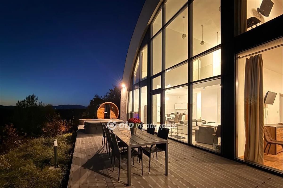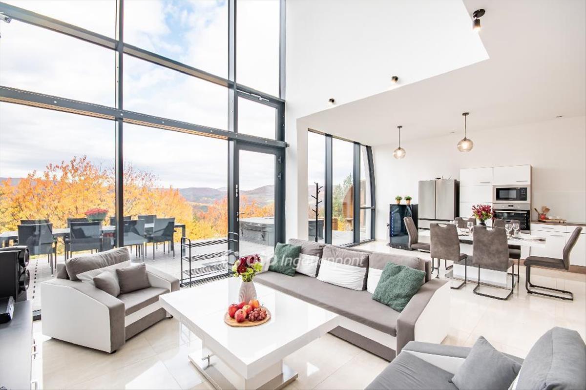 Eladó prémium lakóház vágáshután! Még egy ilyen ingatlannal biztosan nem fog találkozni a piacon! Az egyedi tervezésű, luxus kivitelezésű épület jelenleg vendégházként működik, ugyanakkor tökéletesen alkalmas elegáns, modern családi otthonnak is. a Zempléni hegyvidék legexkluzívabb településén, a festői Vágáshután kínál páratlan kényelmet és teljes nyugalmat.Az eladási ár tartalmazza a teljes bútorzatot, gépeket, berendezéseket. a 1301 négyzetméteres telken álló prémium ingatlan lenyűgöző panorámát kínál. a 2024-ben átadott, 160 négyzetméteres hasznos alapterületű ház impozáns vasbeton szerkezettel, hat méter belmagasságú nappalival és három olyan szobával rendelkezik, amelyek mindegyike saját fürdőszobát kapott. a háromrétegű, hőszigetelt, alumínium tokos nyílászárók elsőrangú hővédelmet biztosítanak. Műszaki tartalmát illetően a ház minden részlete a modern technológiai színvonalat képviseli. a fűtést és a meleg vizet hőszivattyú adja, a vasbeton szerkezetbe integrált fűtési rendszer hosszú ideig tartja a meleget. a 15 kW-os napelem rendszer még ad-vesz mérővel működik. a központi légtechnika és a klíma egész évben kellemes hőérzetet biztosít. Kamerarendszer gondoskodik a biztonságról. a wellness élményt a Wellis jakuzzi és az elektromos finn szauna adja. a házi szennyvízmű élő kultúrás, öntisztuló technológiával működik. Az okos otthon rendszer távolról vezérelhető, beleértve a fűtést, a hűtést, a légkondicionálást, a jacuzzit és a szaunát. a teljes porta körbekerített, a házhoz végig szilárd betonút vezet, így minden körülmény adott a gondtalan használathoz. Vágáshuta mindössze negyven állandó lakossal rendelkezik, így garantált a teljes csend és nyugalom. Ez az ingatlan kivételes lehetőség mindazok számára, akik a természet közelségében keresik a luxust, a letisztult modern kényelmet és az abszolút békét. Jöjjön el, és nézzük meg együtt! Garantáltan nem fog csalódni!