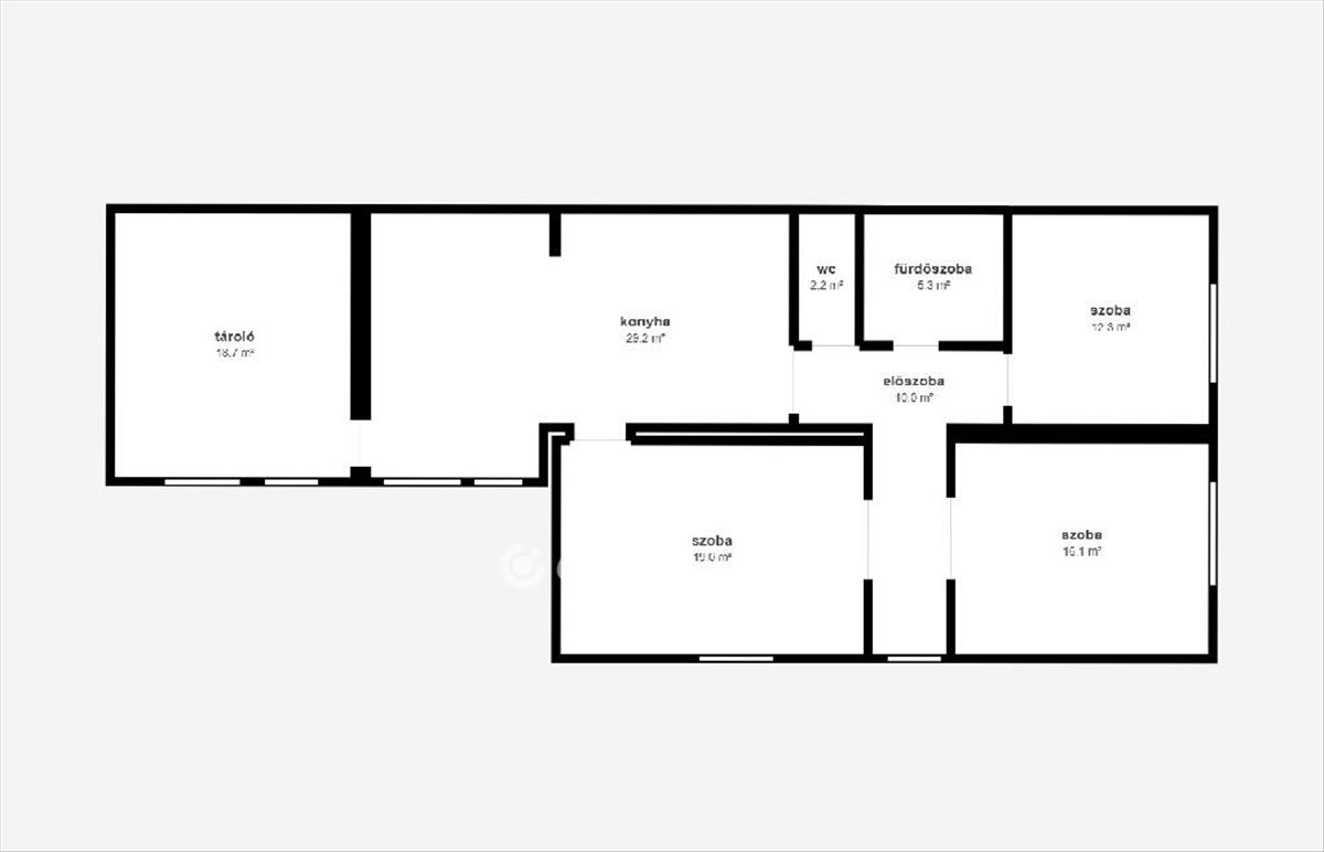 3 szoba + nappali-konyha, előszoba, fürdőszoba, külön WC