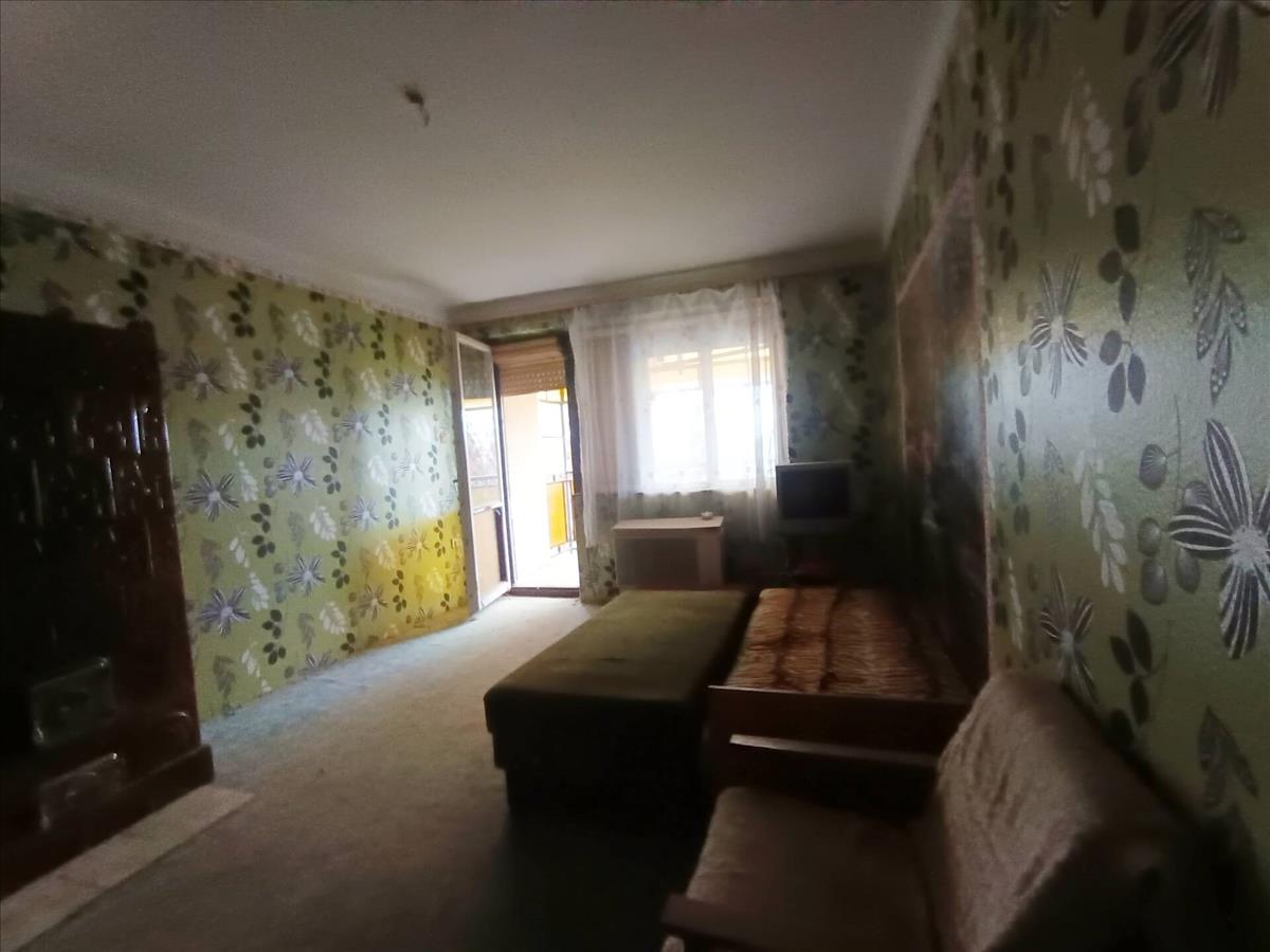 A szoba padlószőnyeggel, a konyha pedig burkolattal és csempével ellátott.