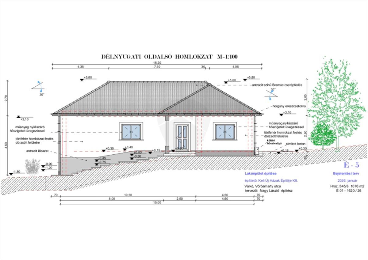 Valkón, a Vörösmarty utcában eladó egy új építésű családi ház ami szerződéskötés után azonnal épülni kezd.-Telek mérete: 1076 m²