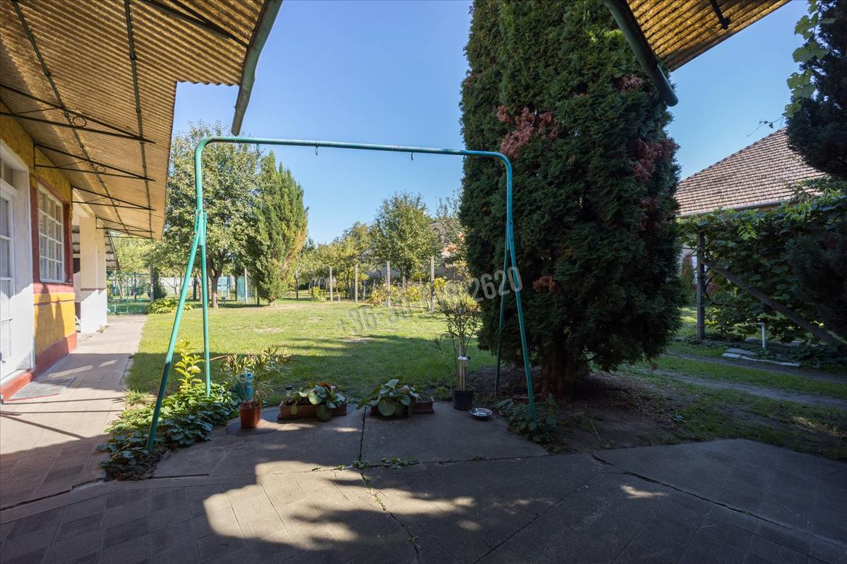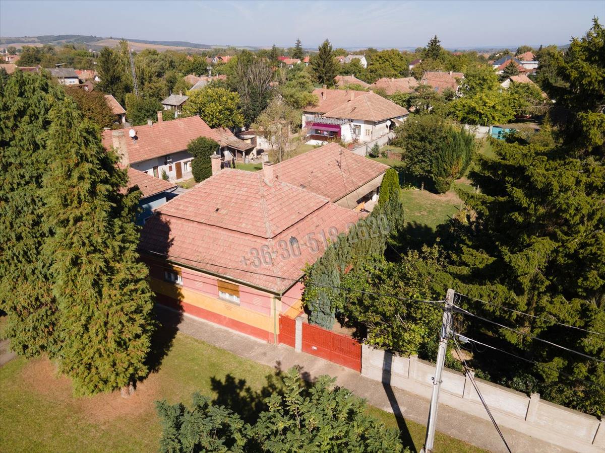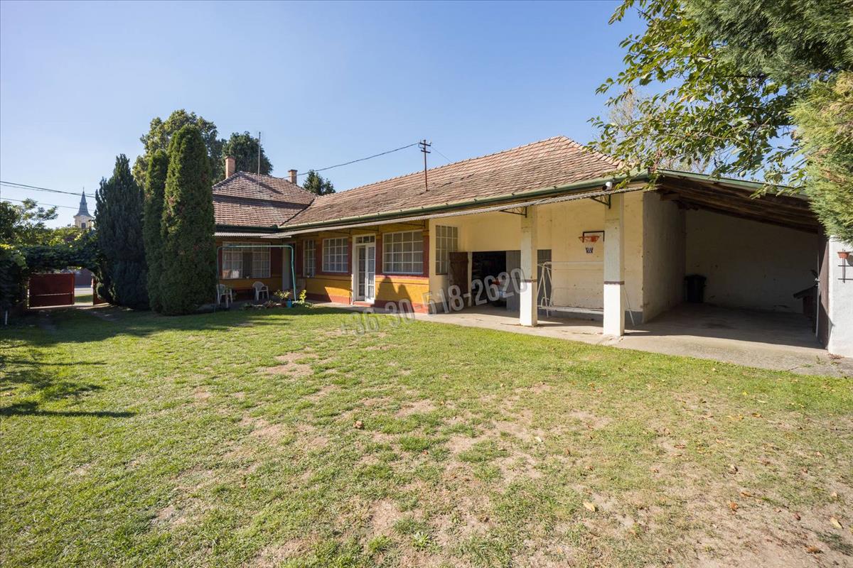 Vámosmikolán, a Kossuth Lajos utcán kínálunk megvételre egy kivételes adottságokkal rendelkező családi házat, amely a település központi részén helyezkedik el, mégis elszeparált, intim környezetet biztosít. a közel 1750 m²-es, két utcára nyíló telek nemcsak kényelmes autós megközelítést kínál mindkét oldalról, hanem a helyi építési szabályzat alapján akár meg is osztható, így kiváló lehetőséget nyújt befektetéshez vagy több generáció együttéléséhez. a gondozott kertben gyümölcsfák és egy kisebb szőlős kaptak helyet, a locsolást gyűrűskút, valamint külön kerti vízóra könnyíti meg.Az 1970-es években épült, tégla falazatú, 147, 45 m²-es családi otthon elrendezése nagycsaládosok számára is ideális: négy nagyméretű szoba, egy további félszoba, konyha, spájz, fürdőszoba és közlekedők alkotják a lakóteret, a fa födém és cserépfedés időtálló szerkezetet biztosít. a fűtést több helyiségben fatüzeléses megoldások adják, a melegvíz-ellátást villanybojler szolgálja. Boltíves pince található, a gépkocsik számára pedig egy tágas, összesen több mint 62 m²-es garázs és fedett beálló áll rendelkezésre.