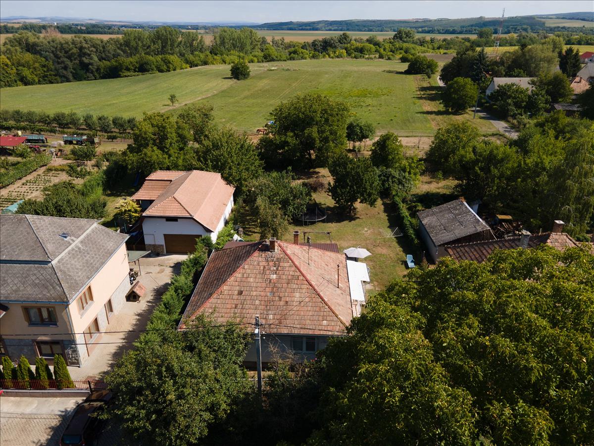Vámosmikola egyik legkedveltebb utcájában vált eladóvá egy 1197m2-es telken elhelyezkedő, remek elosztású, 92m2 hasznos alapterületű, öt szobás családi ház, melyhez tartozik fedett terasz, tároló és egy vállalkozás üzemeltetésére is alkalmas melléképület!A ház az 1970-es években épült, tégla(B30) falazattal és fa födémmel. a fűtésért egy vízteres cserépkályha felel radiátor hőleadókkal, valamint a nappaliban egy klasszikus cserépkályha is található. Közművek közül villany(3x16A, 1x16A - ipari áram is) és víz került bekötésre, gáz a telken belül, csatorna pedig nem elérhető a településen. Az ingatlan az utóbbi években átesett több felújításon, melynek főbb részei: