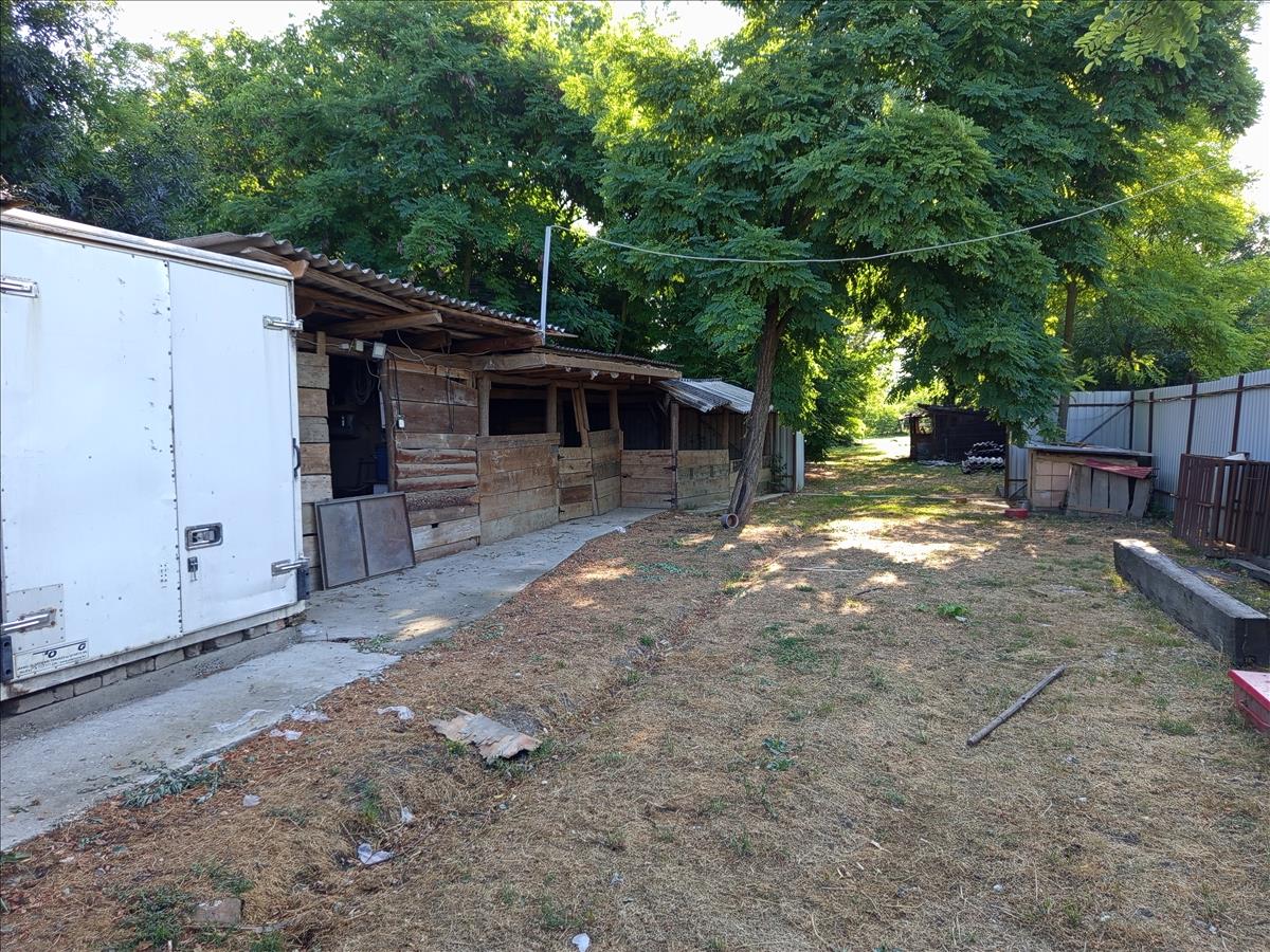 A hátsó udvarban több gazdasági épület, egy 2, 5x6m–es konténer (amely alkalmas raktárhelyiségnek),